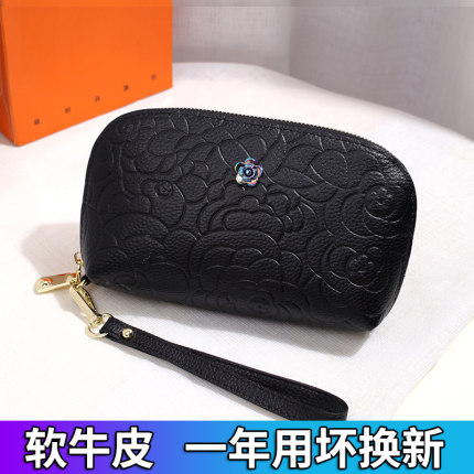 真皮手包女2025春新款散步手机小包牛皮山茶花大容量零钱包手拎包