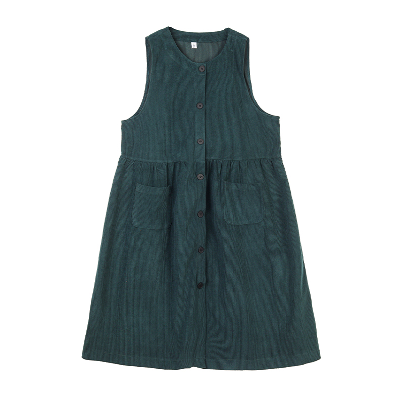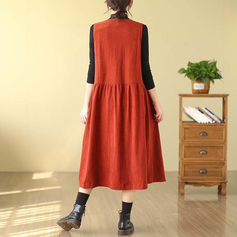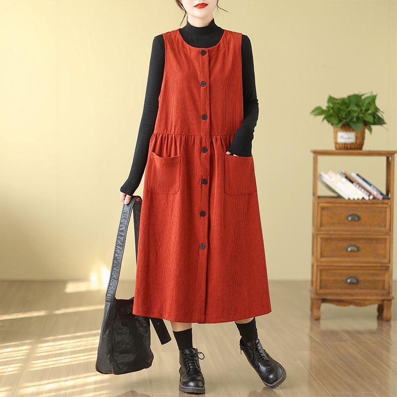 复古大口袋灯芯绒背心裙女秋冬减龄宽松中长款无袖条绒A字连衣裙