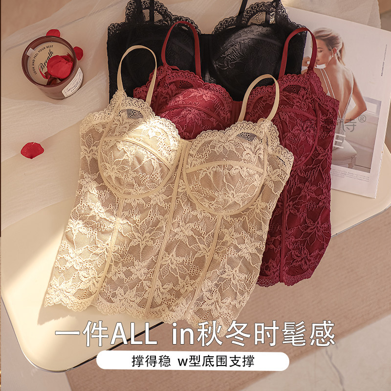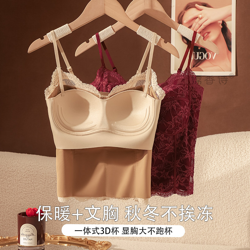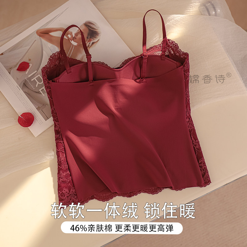 红色蕾丝吊带背心女士带胸垫一体塑形显瘦2025新款秋冬内搭打底衫