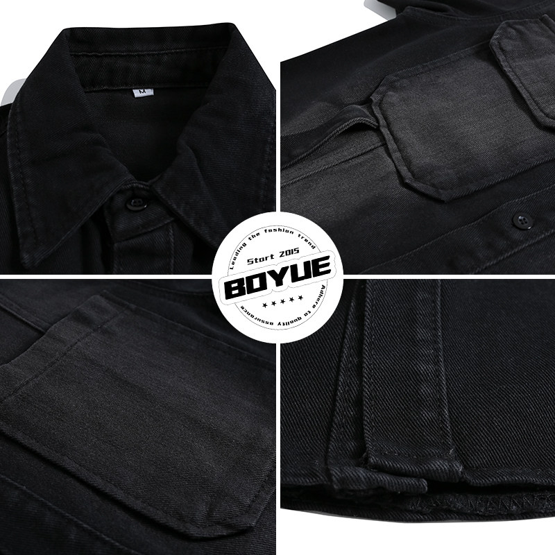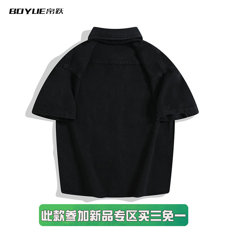 BOYUE帛跃潮流痞帅机车少年渐变牛仔夹克开衫工装翻领短袖衬衫男