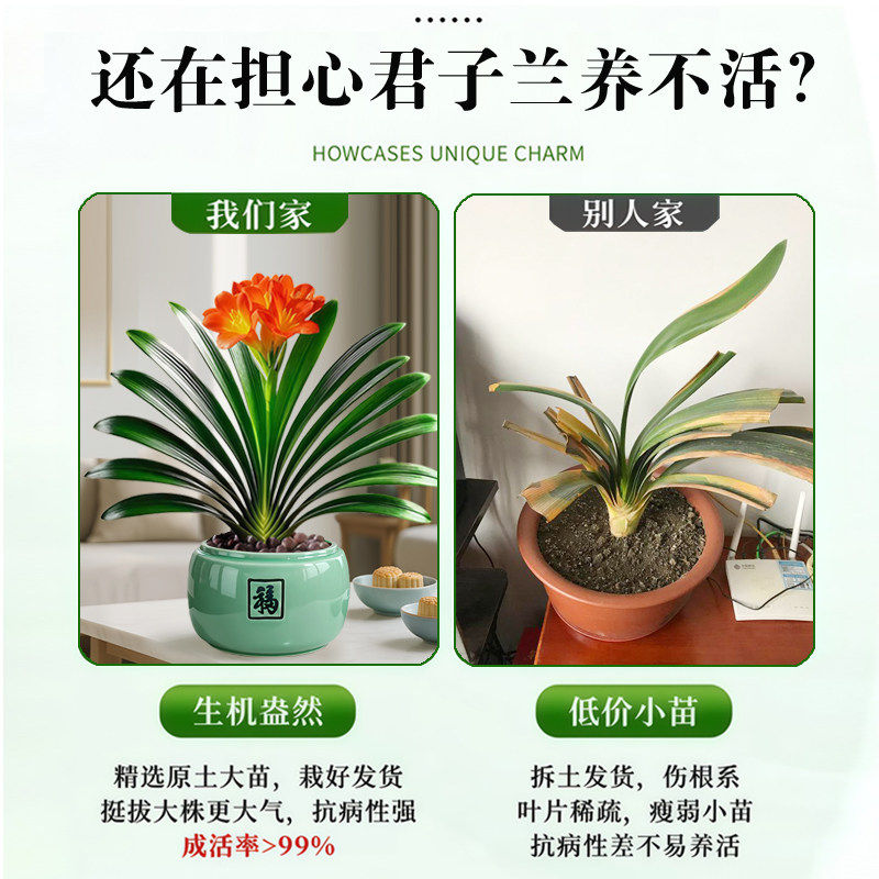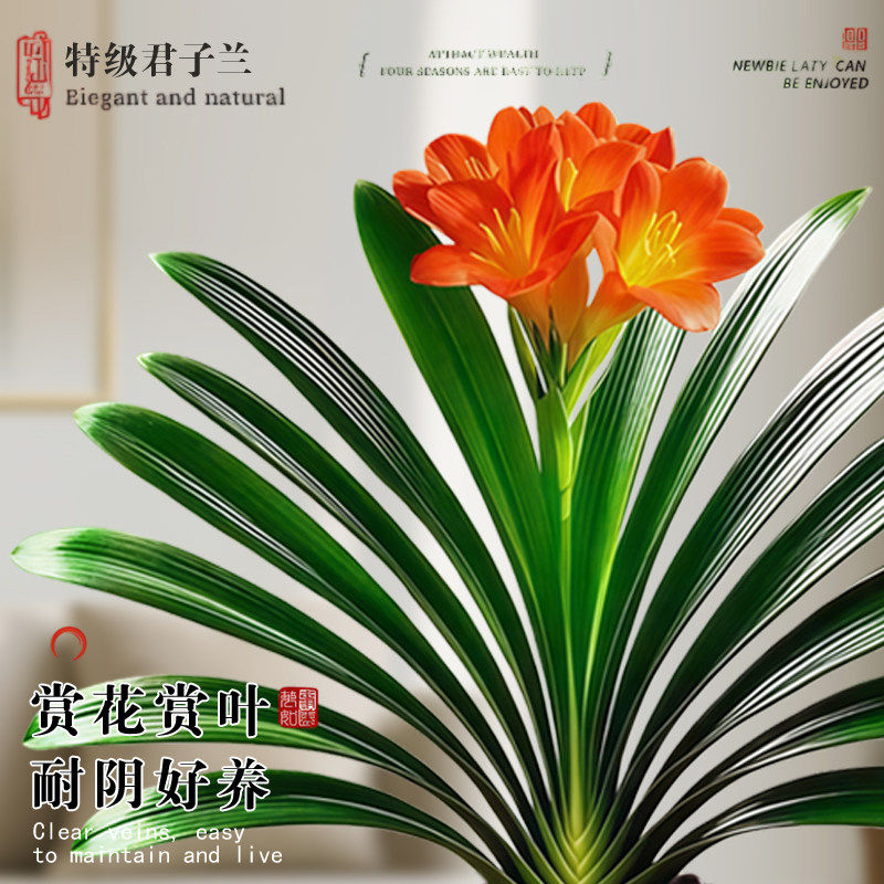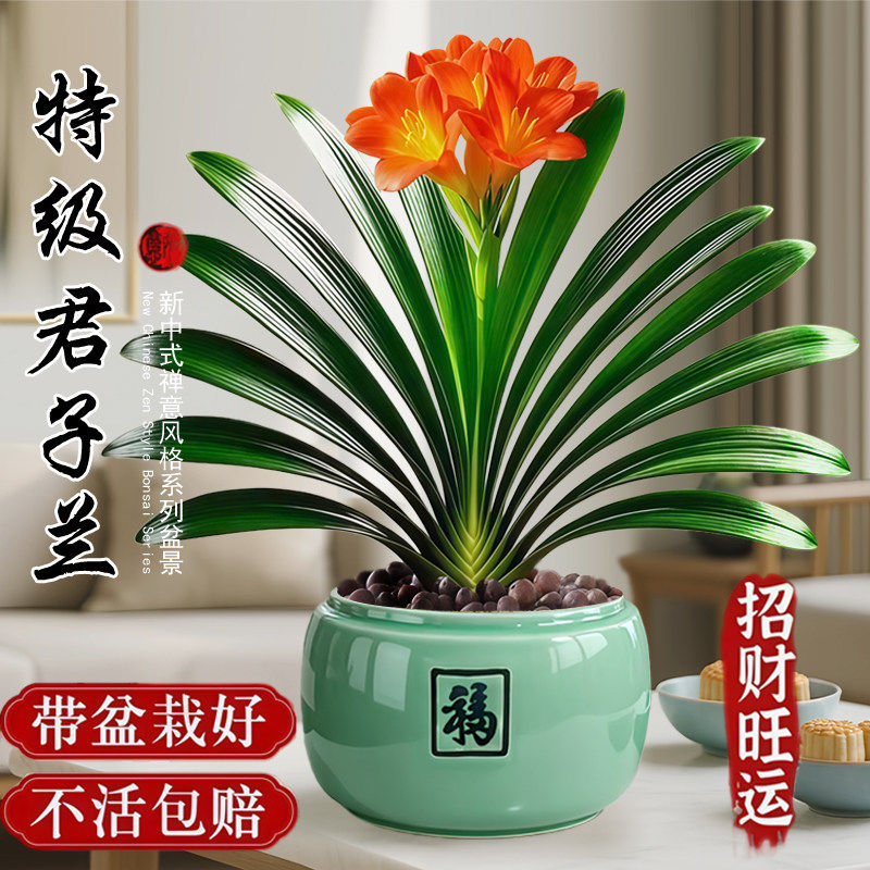 君子兰盆栽带花苞招财旺宅桌面盆景绿植室内客厅中式禅意四季植物