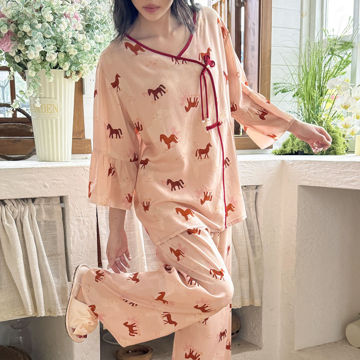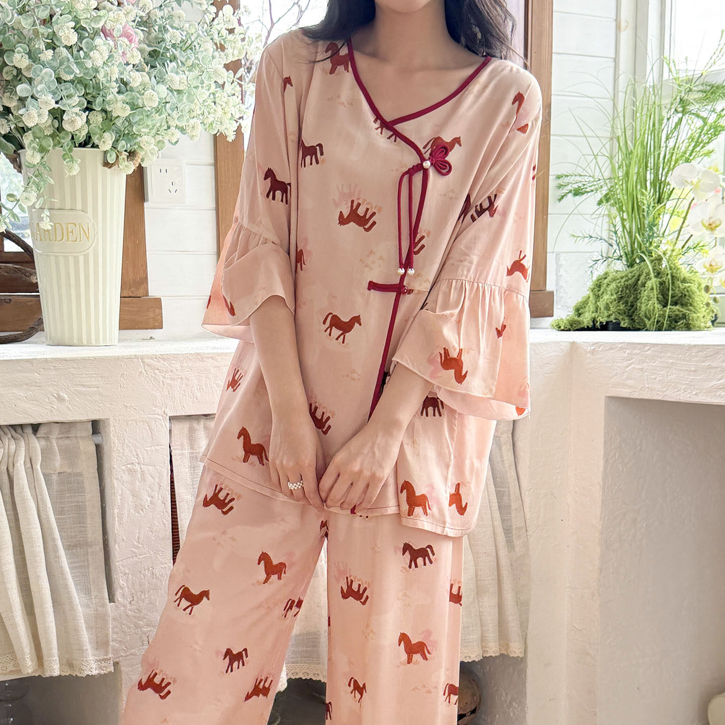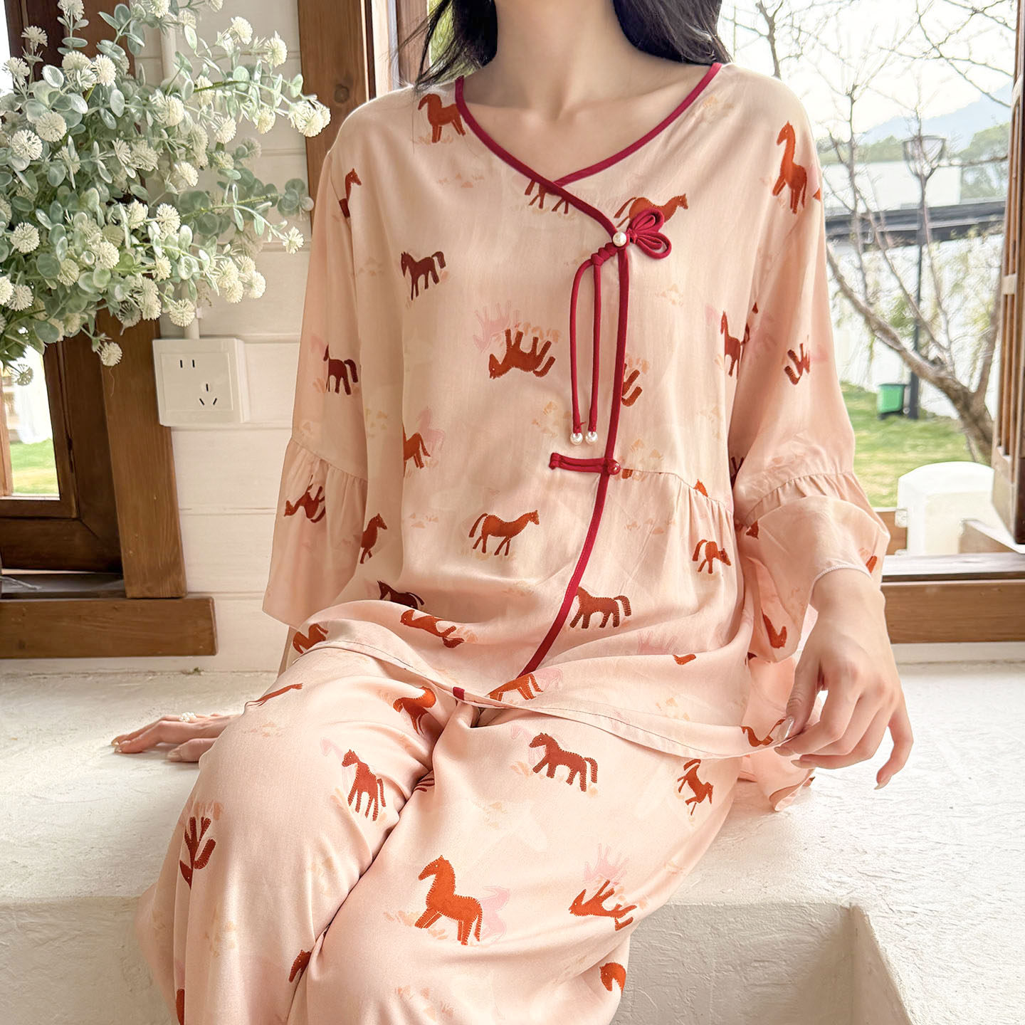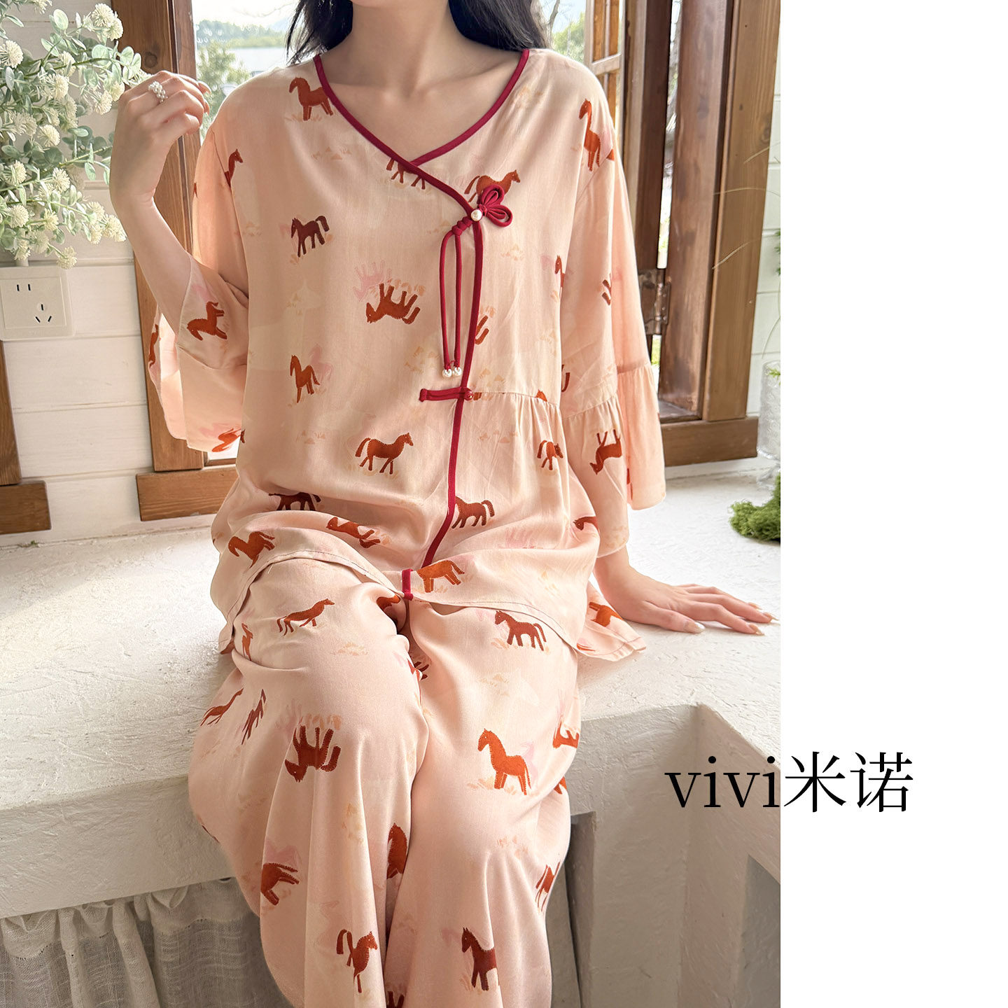 马年新款棉绸女可外穿睡衣套装