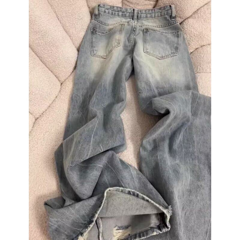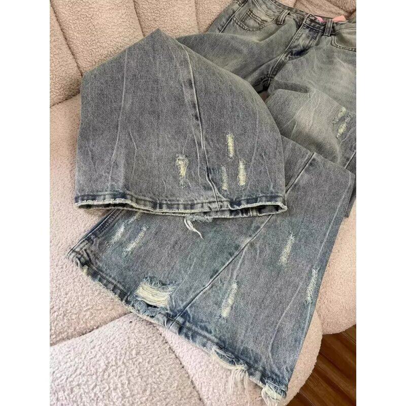 美式复古水洗破洞牛仔裤男2026年春季新款设计感宽松直筒阔腿裤子