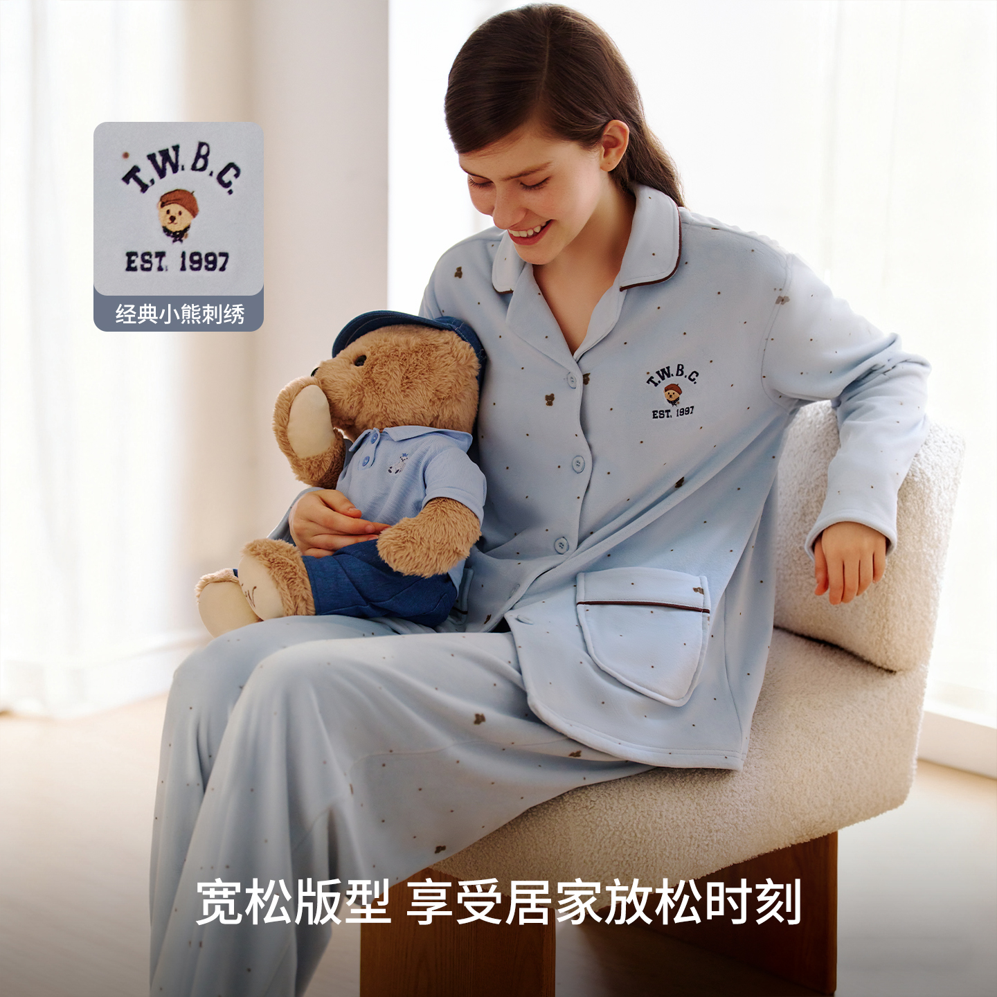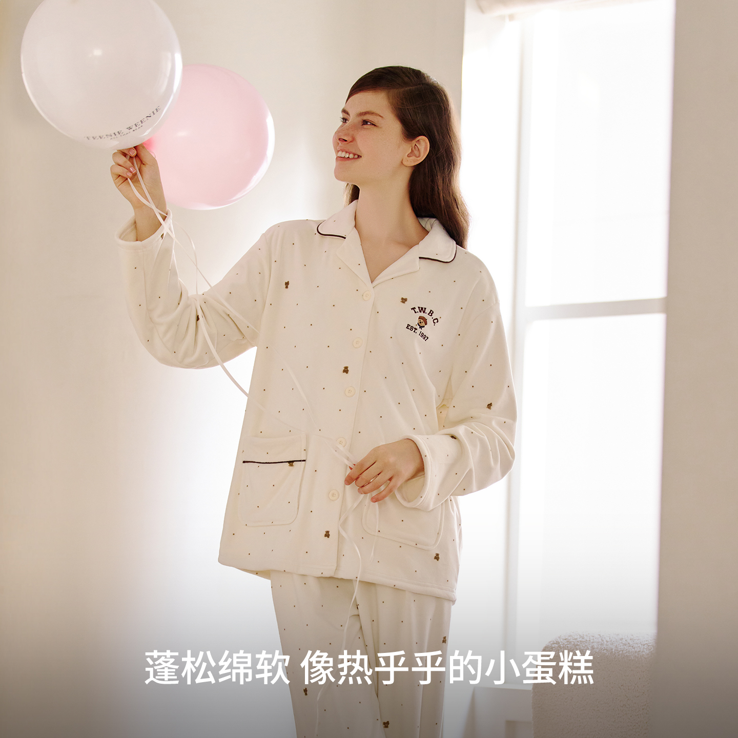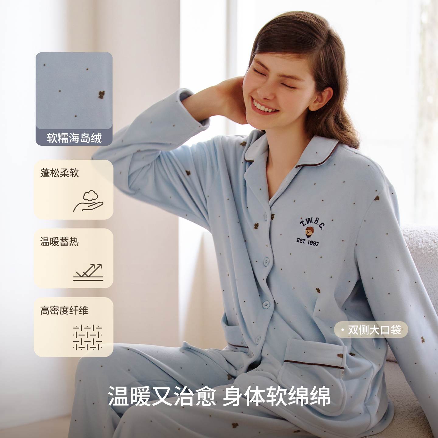 TeenieWeenie小熊舒适保暖海岛绒睡衣女2025秋冬新款家居服套装女