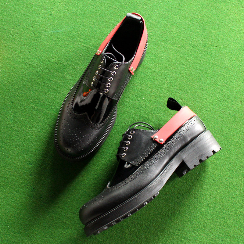 JINIWU吾倪季2024推荐纯黑德比圆头大气手工牛皮后胶带厚底皮鞋男