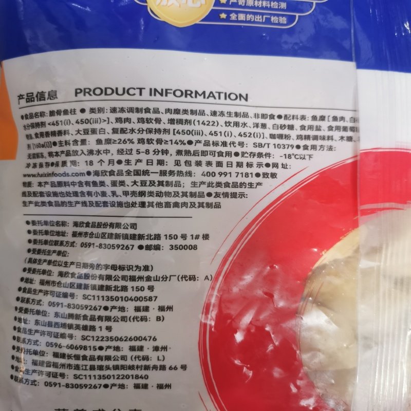 海欣捞道脆骨鱼柱2斤装关东煮烧烤脆骨棒脆骨丸鱼柱鱼丸火锅食材