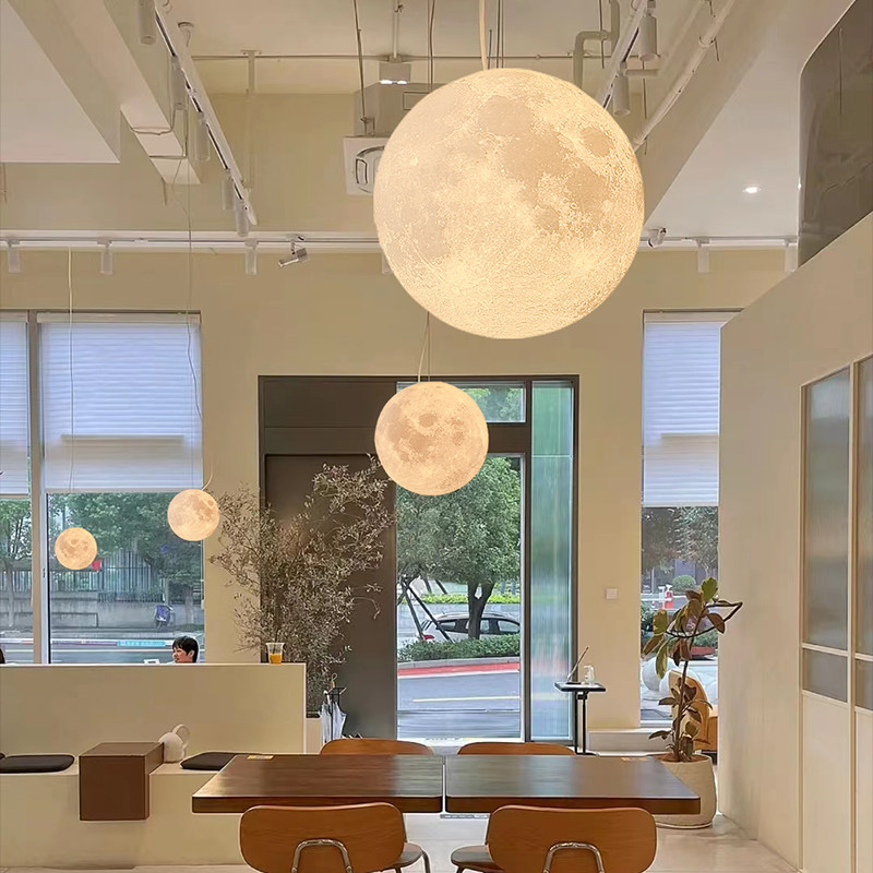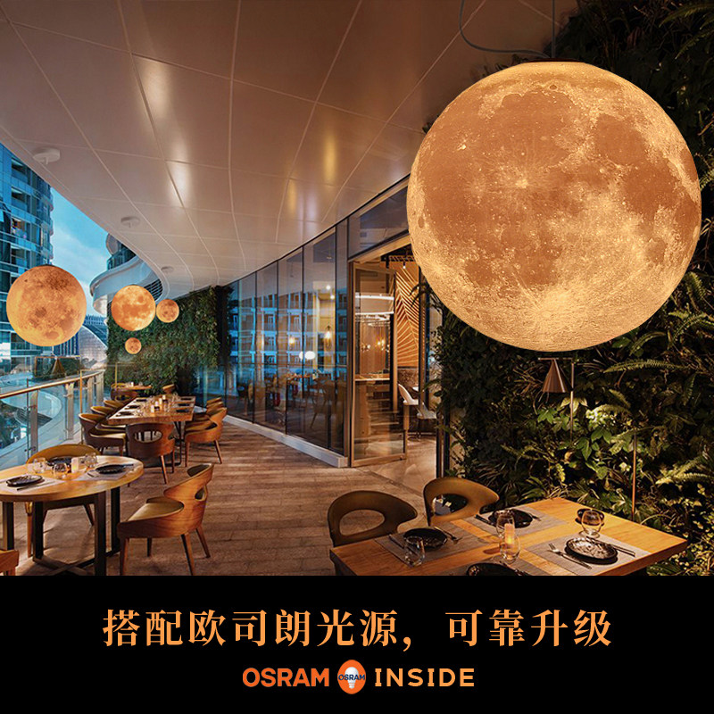 月球灯3d打印球形美甲酒店吊灯店铺商用户外超大包厢圆球月亮吊灯