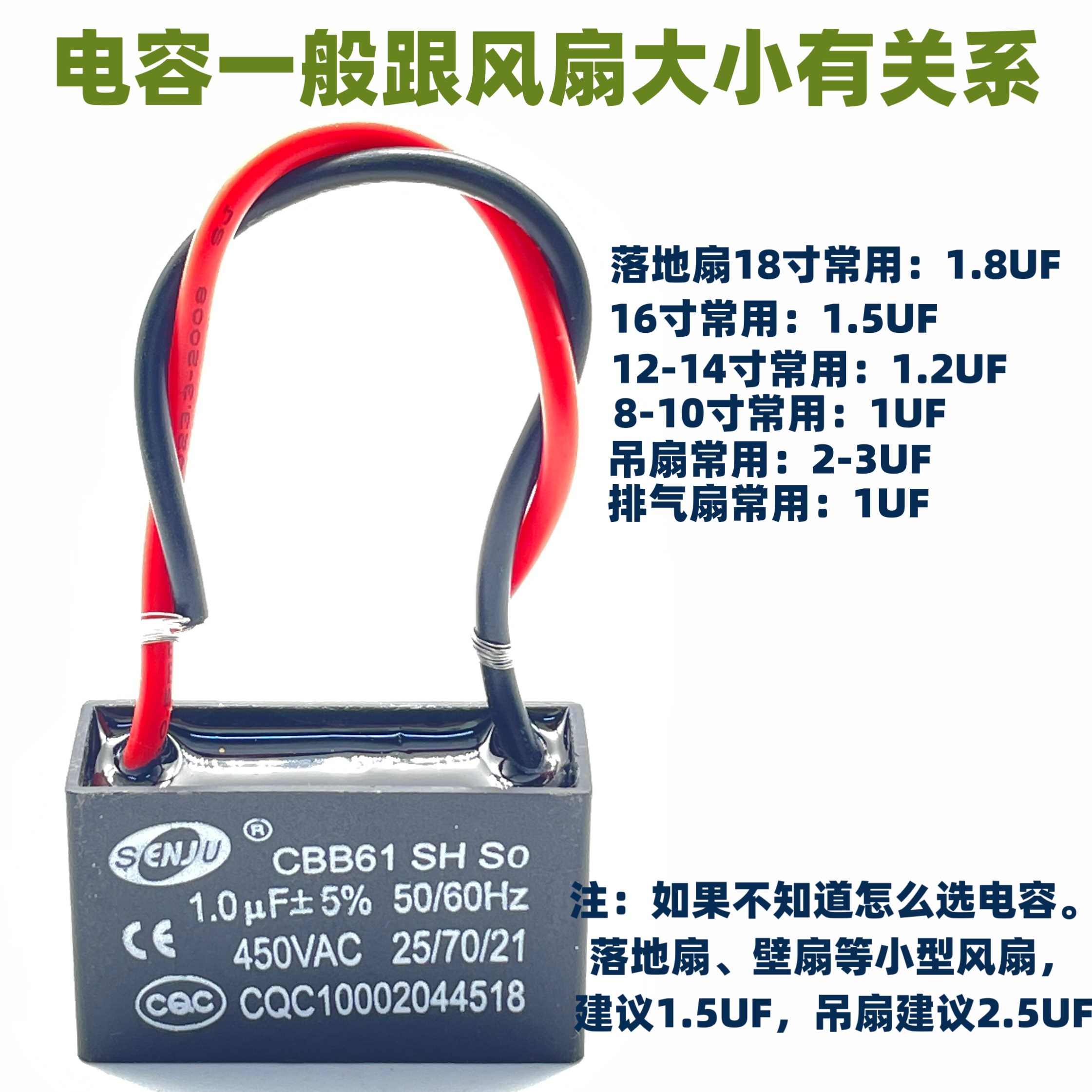CBB61风扇启动电容器原装吊扇油烟机1/1.2/1.5/1.8/2/2.5/3UF450V