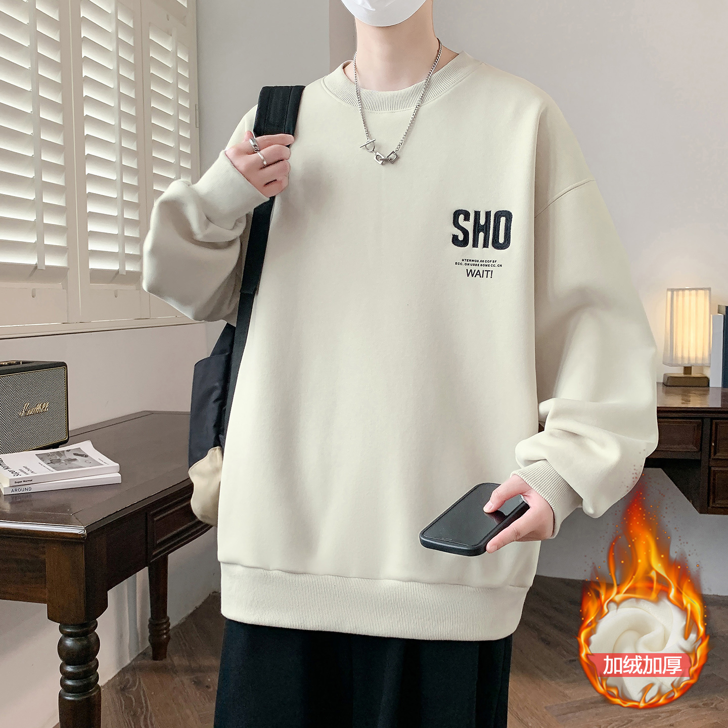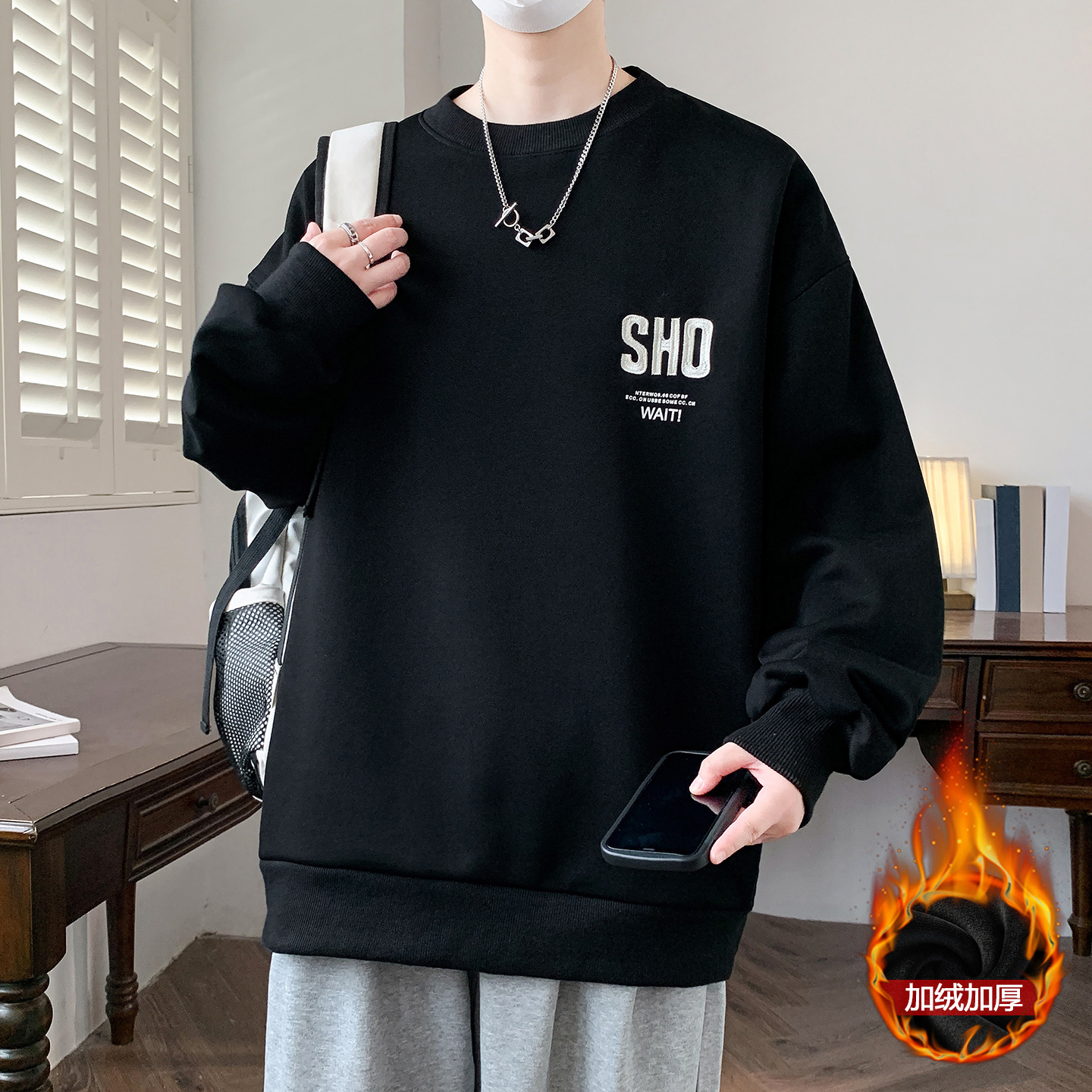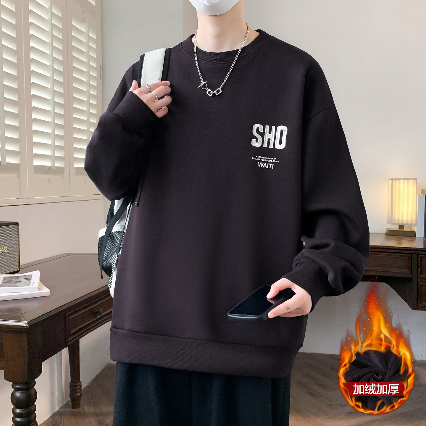 秋冬季加绒加厚卫衣男孩初高中学生打底衫青少年大童圆领长袖t恤