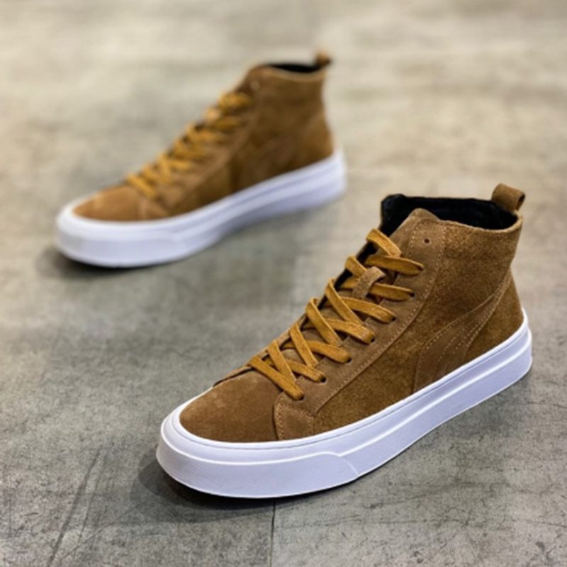 2025年春季新款爆款潮流男士高帮鞋翻毛皮加绒百搭韩版日常休闲鞋