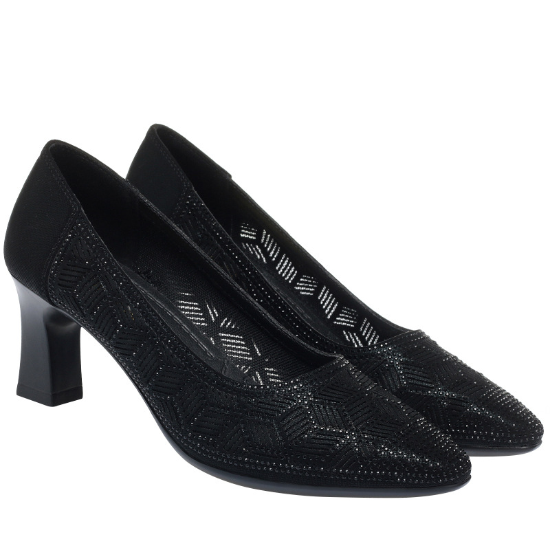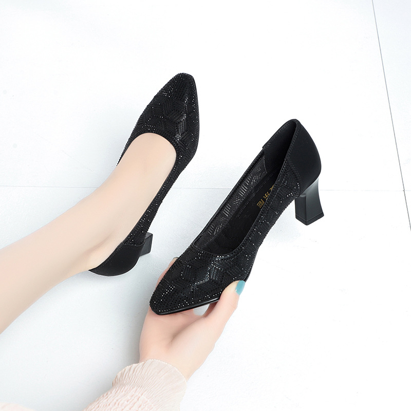 镂空水钻单鞋女新款春夏款妈妈鞋子中跟尖头女鞋中年女士凉鞋