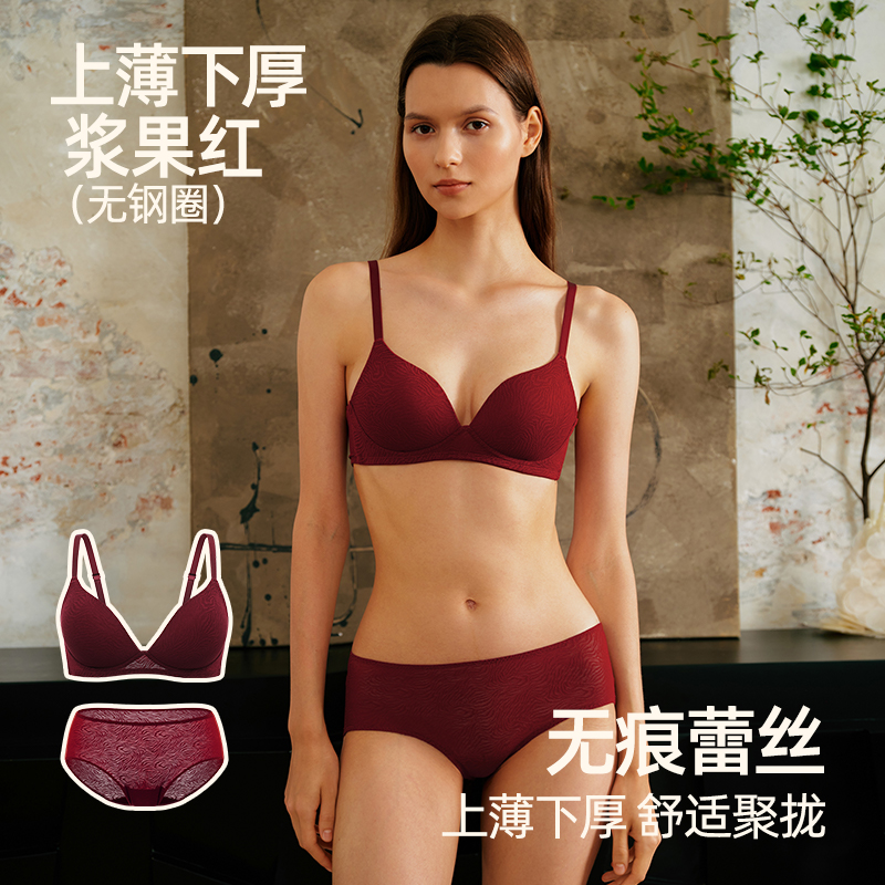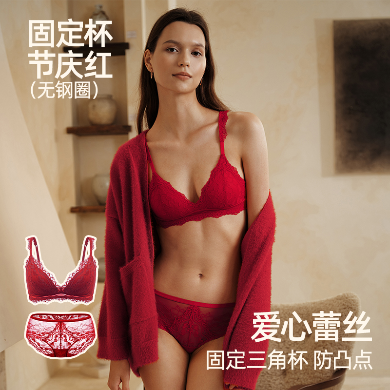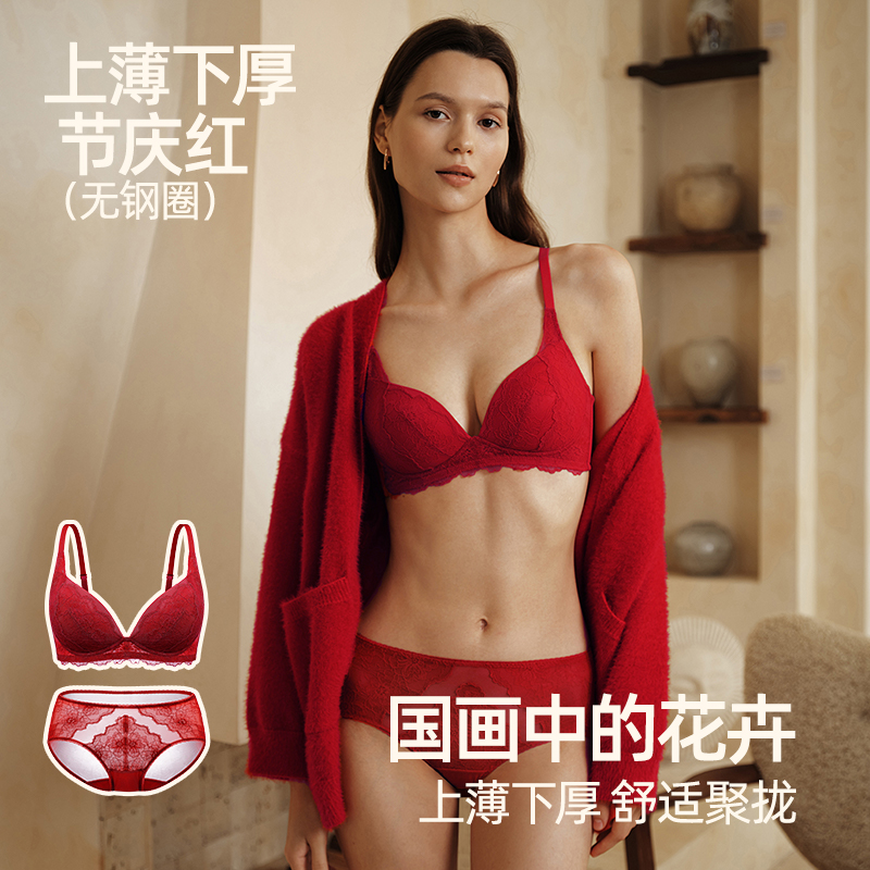 遐中小胸无钢圈聚拢文胸送礼本命年新娘结婚红色内衣内裤套装女