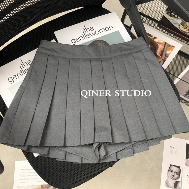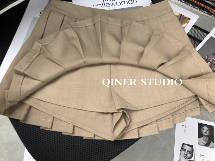 欧美ins街头纯欲风显瘦百搭垂感A字高腰带底裤西装裙百褶裙女短裙