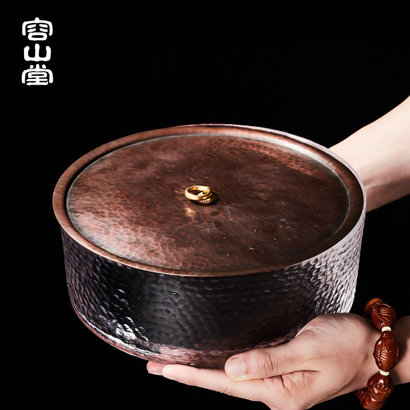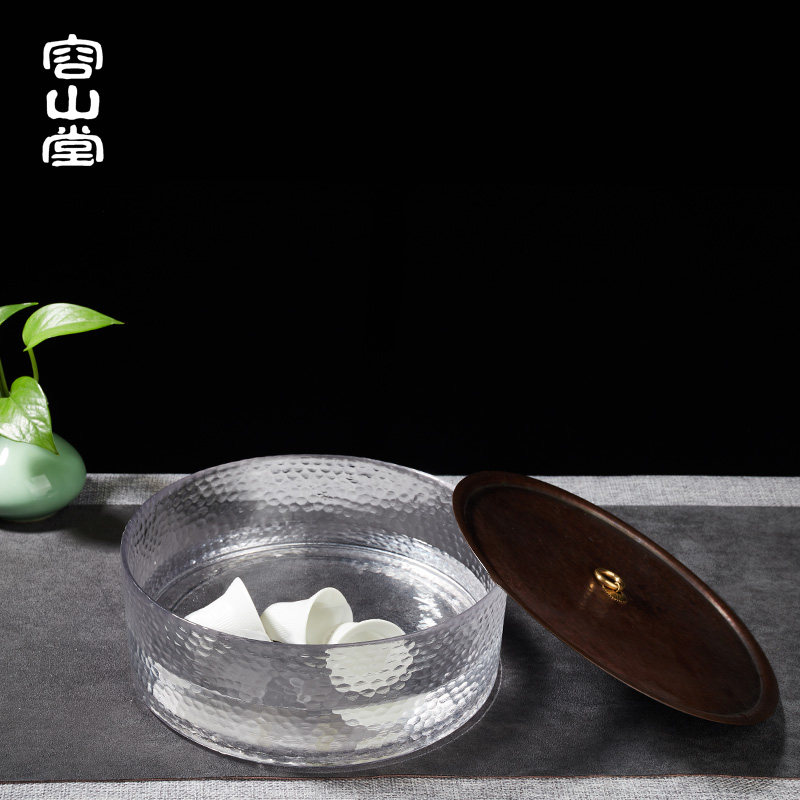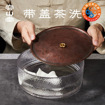 容山堂手工铜玻璃茶洗水洗带盖陶瓷盖子茶水桶茶渣大茶杯碗茶具