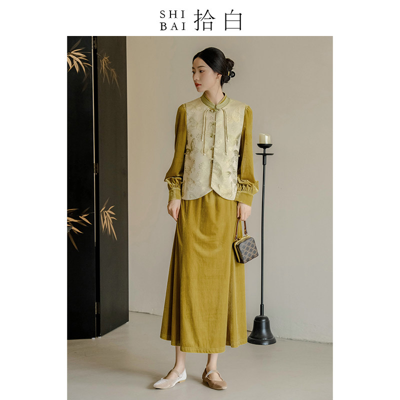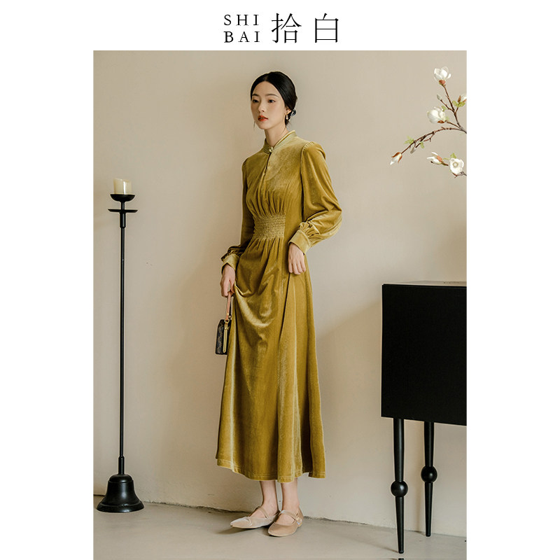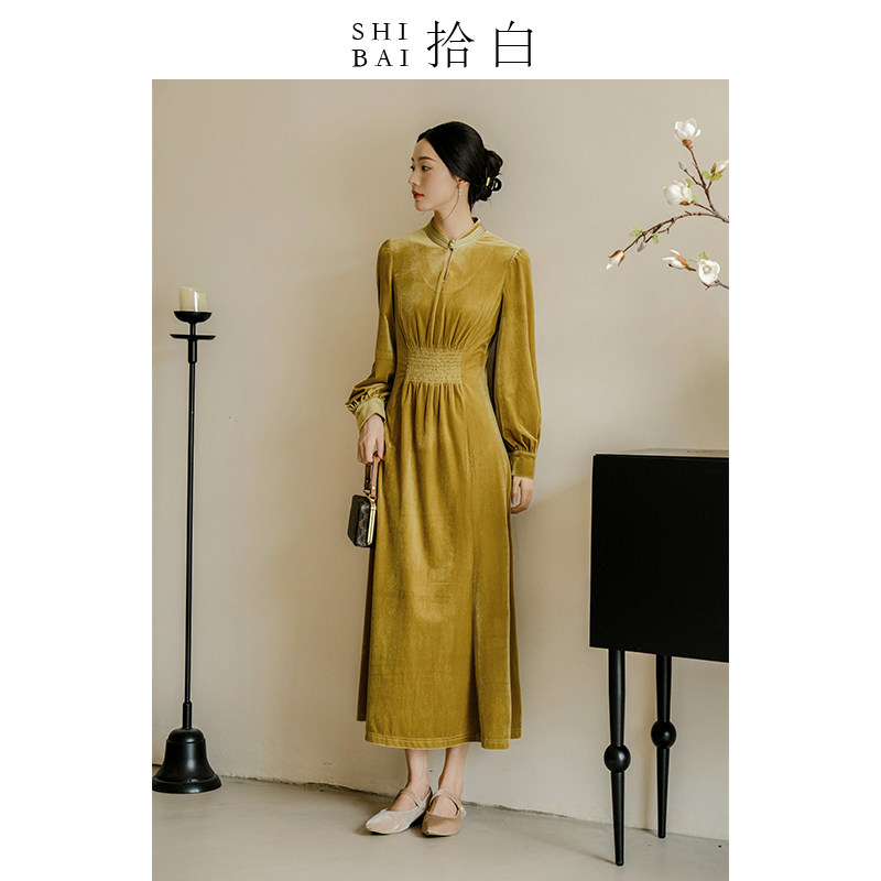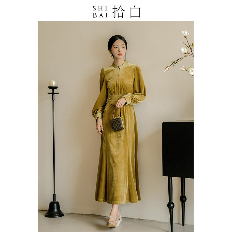 SHIBAI拾白新中式女装丝绒连衣裙秋季高端日常通勤改良复古旗袍