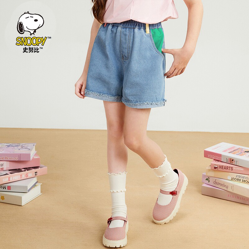 史努比女童牛仔短裤儿童裤子夏季2025新款中小童洋气时髦五分裤潮