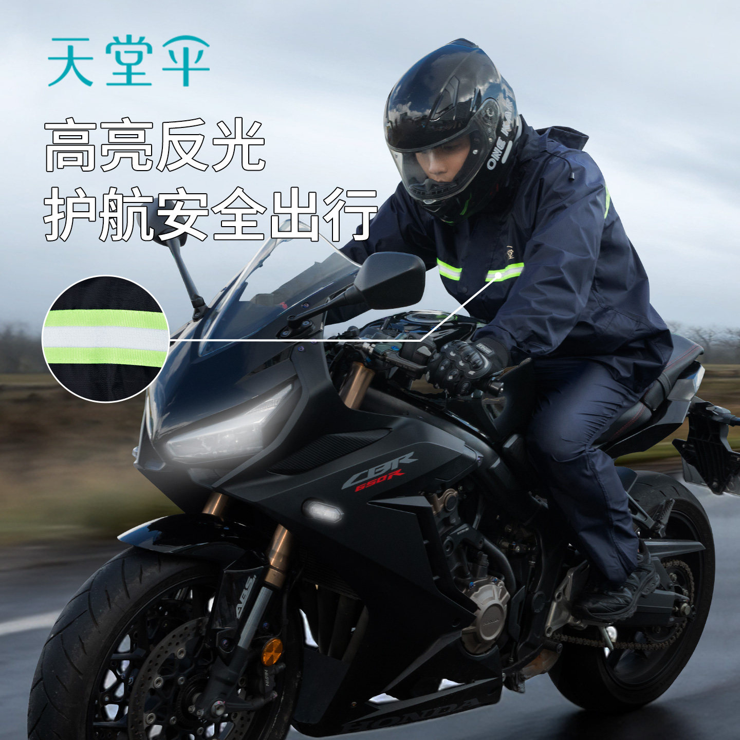 天堂电动车摩托车单人全身防水分体面罩雨衣雨裤套装外卖男女士款