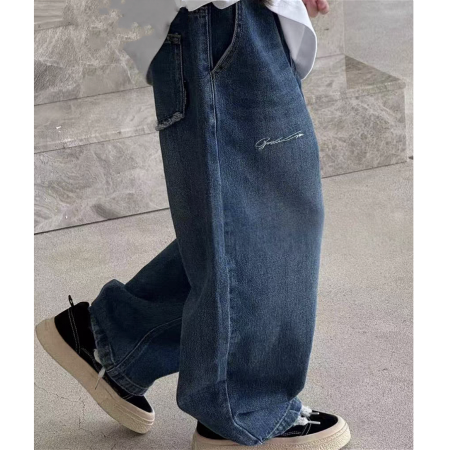 秋男女直筒长裤宽松牛仔老爹裤潮