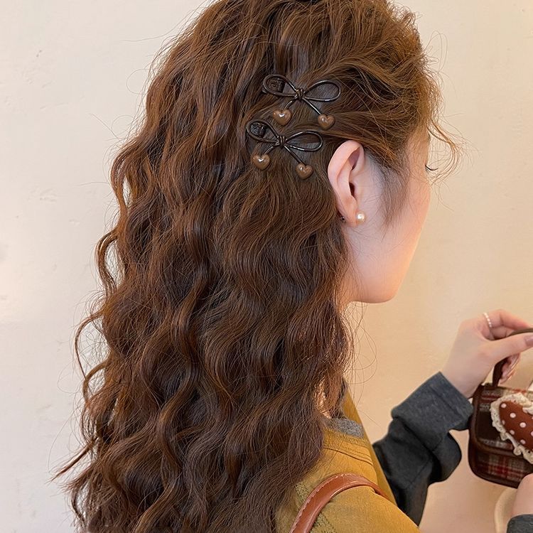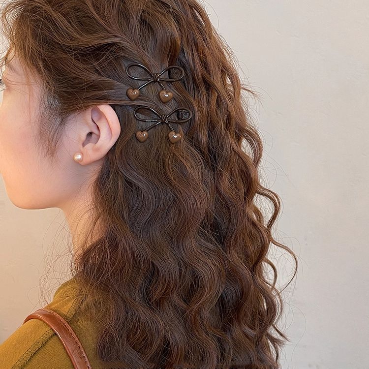 蝴蝶结发夹女咖色爱心边夹侧边前额发卡2025新款刘海夹子高端头饰