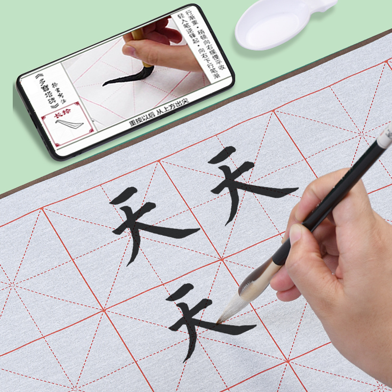 米字格水写毛笔字水写布套装锦缎书法布水洗布沾练习布练字纸速干布仿宣纸加厚蘸水专用初学者入门毛笔练字帖