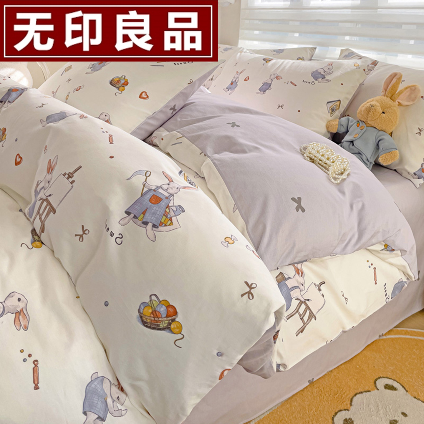 无印良品卡通儿童全棉四件套纯棉柔软裸睡床品女生单人宿舍三件套