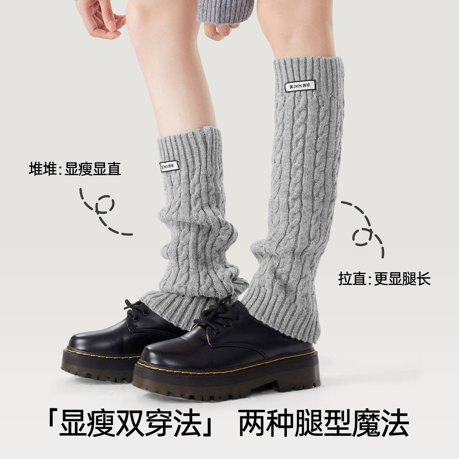 JKN麻花袜套羊毛堆堆袜女士腿套护腿套配打底袜小皮鞋保暖小腿袜