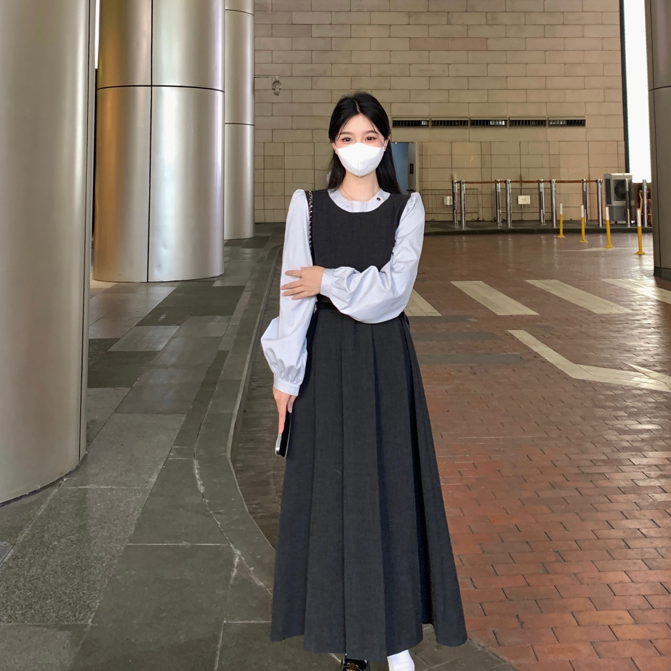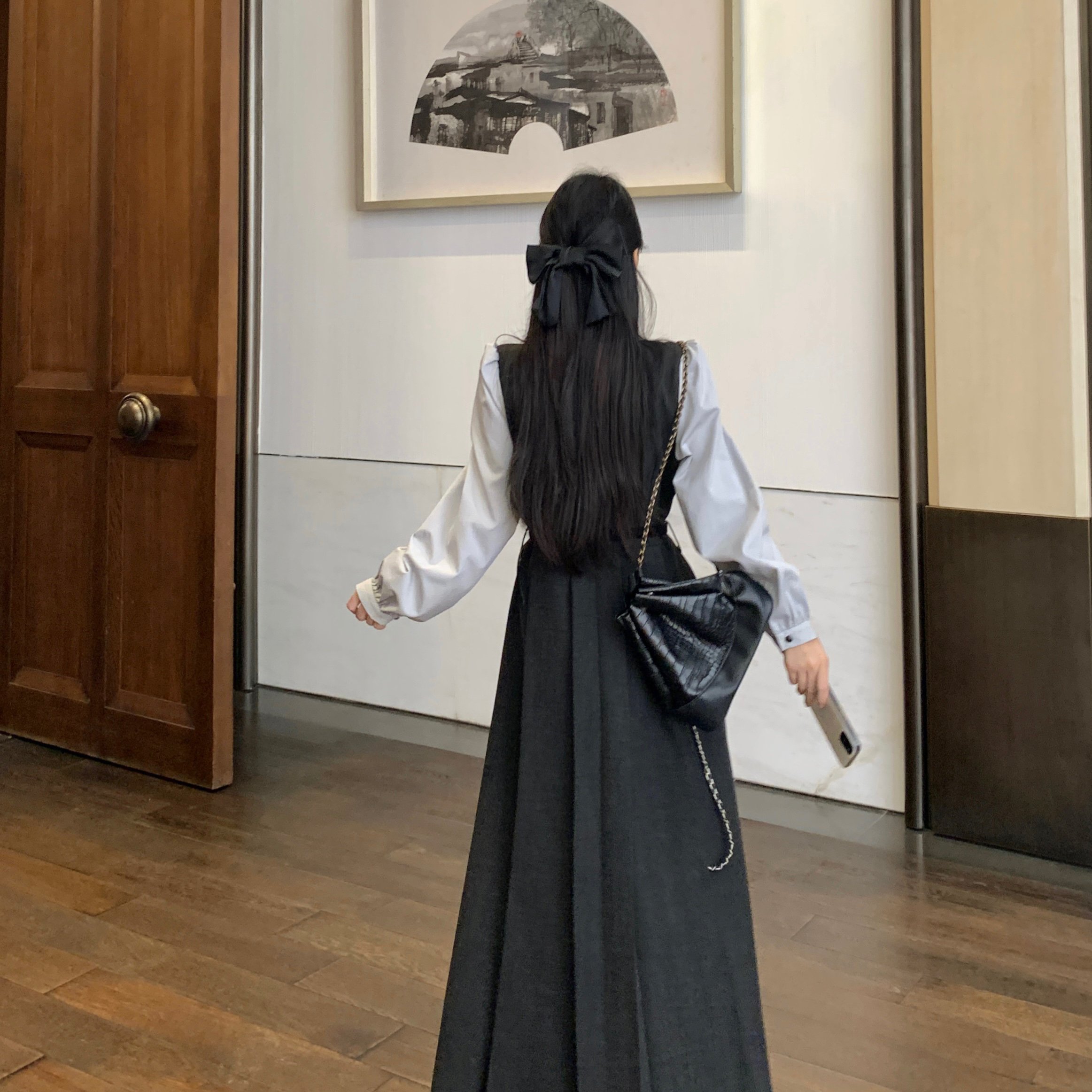 大码秋冬胖mm法式假两件长袖连衣裙收腰显瘦韩系氛围感穿搭长裙女