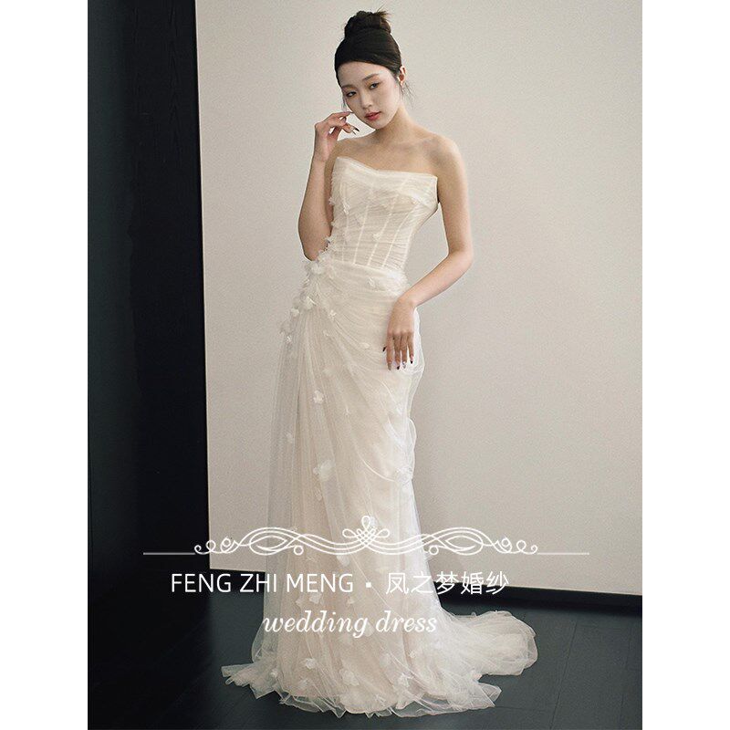 速发鱼尾主婚纱2婚25新款晨袍晚娘出门纱轻小个子订0新礼服裙敬酒