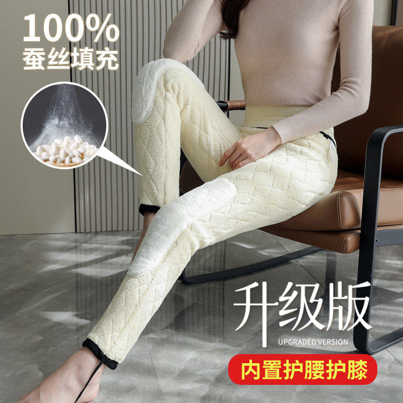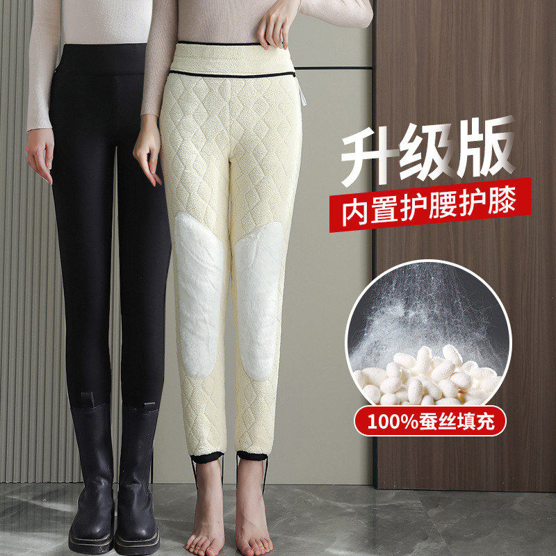 泽yp护膝羊羔绒蚕丝保暖裤女外穿加绒加厚打底裤高腰大码东北特厚