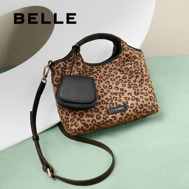百丽包包女25新款商场同款豹纹通勤斜挎手提大容量托特包BL824BX5