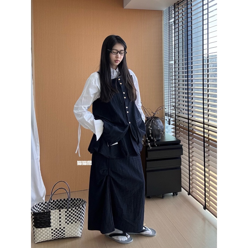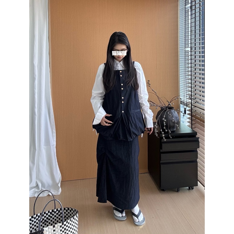 猫姐推荐|小众高级感自然肌理褶皱吊带背心+屁帘+半身裙三件套女