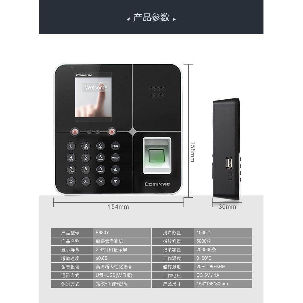 脸识别考勤机1F6人脸人896考牙勤机指纹打卡机西班语