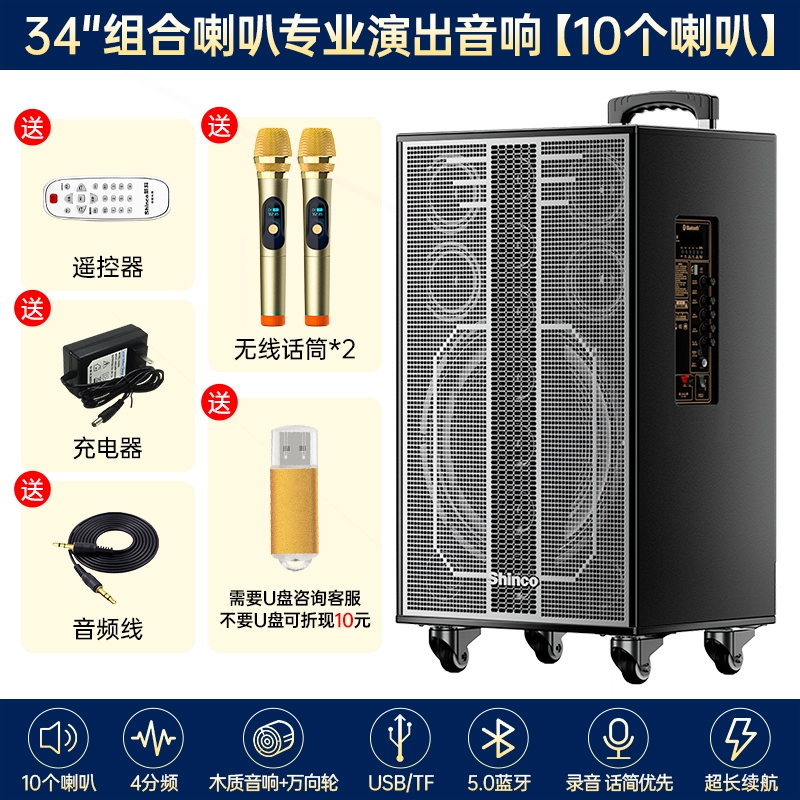 新科专业户外广场舞音响移动便携箱k歌低音炮大功率式拉杆蓝牙音