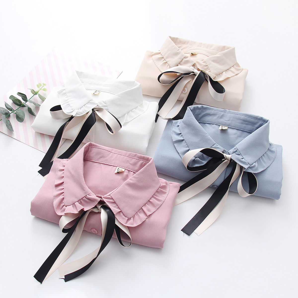 甜美风木耳边均码白衬衫春季新品