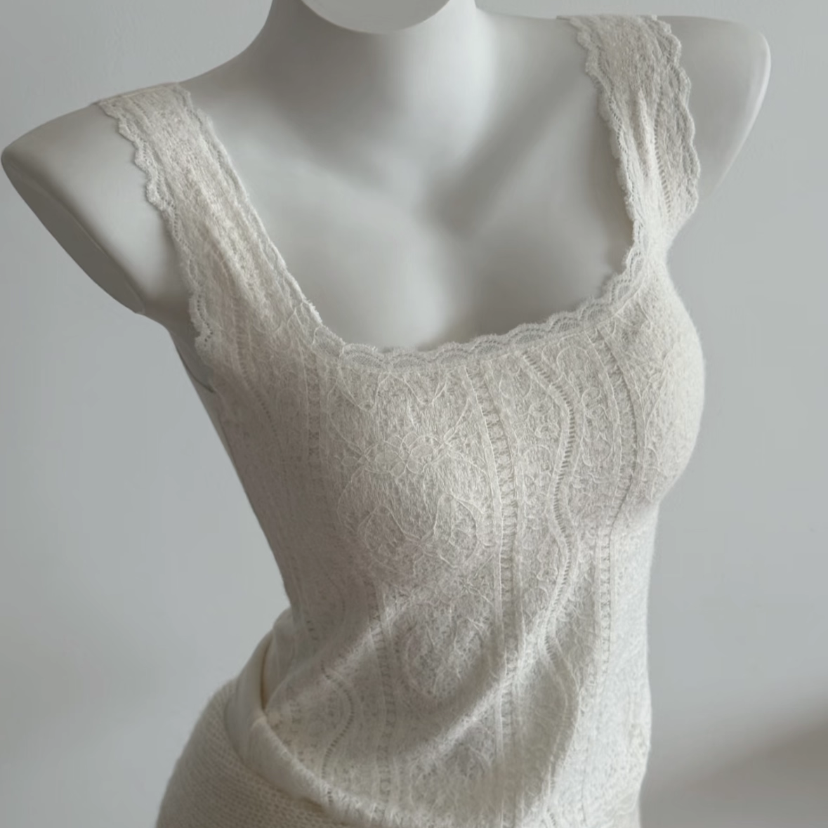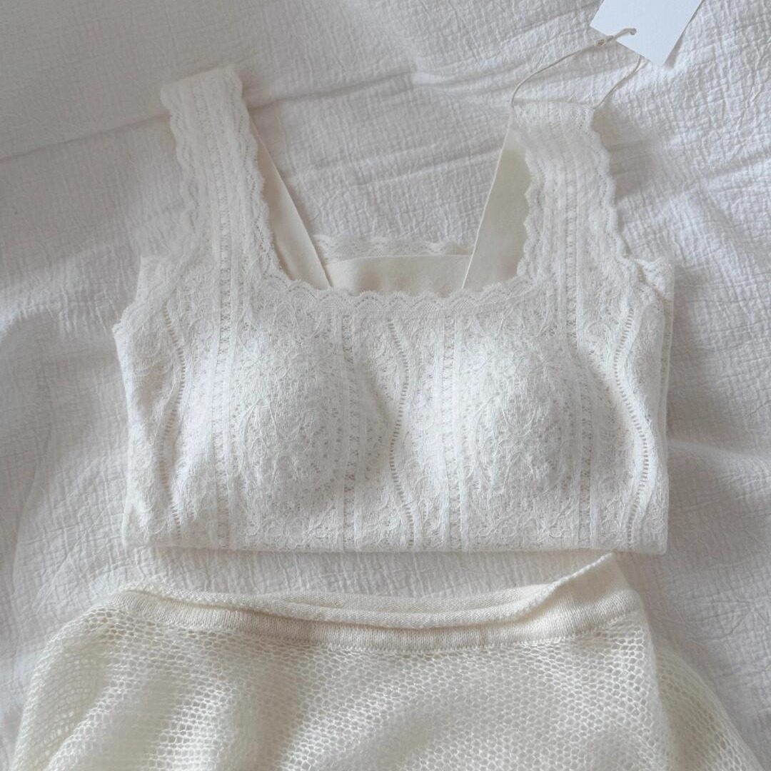 秋冬法式蕾丝方领磨毛吊带美背女士打底衫背心内衣带胸垫免穿文胸