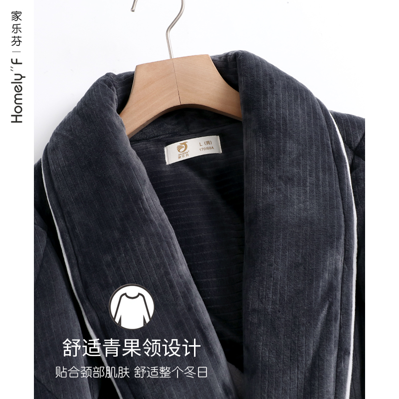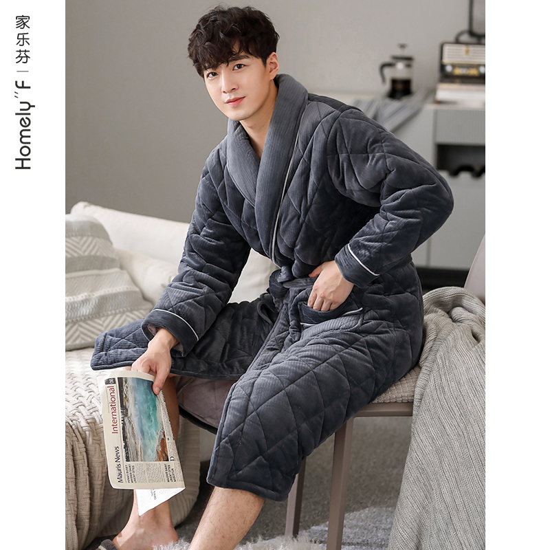 睡袍男士冬季加厚加绒长款珊瑚绒夹棉保暖浴袍男睡衣法兰绒秋冬款