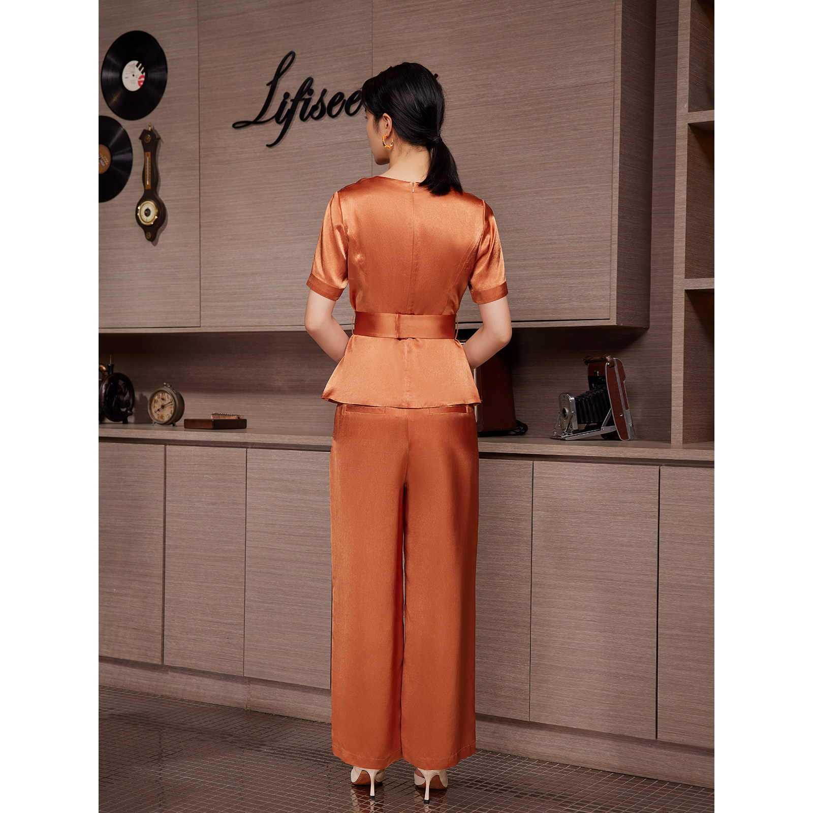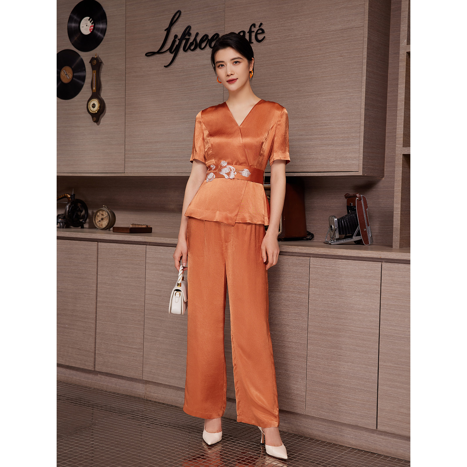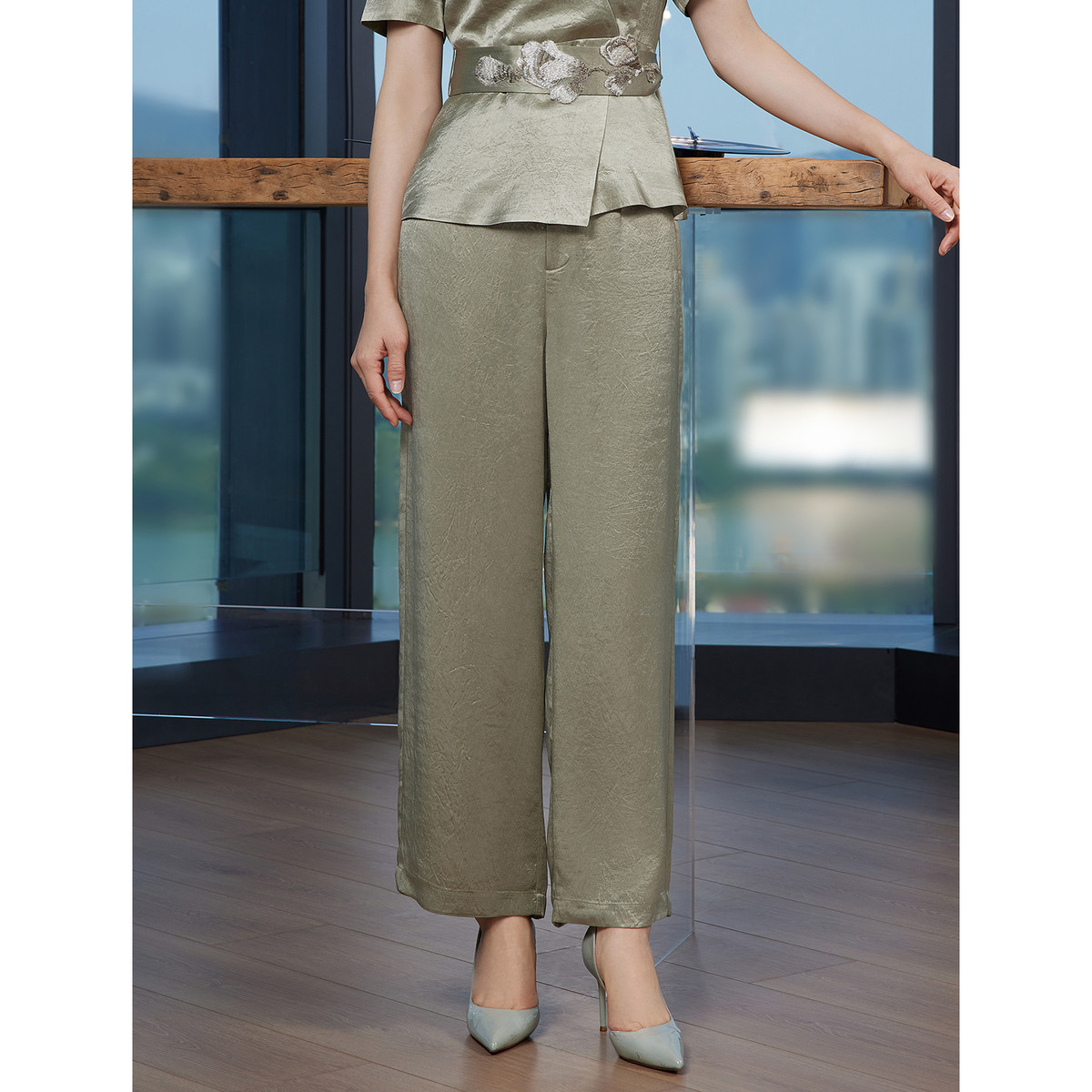 【丝滑醋酸】 BBLLUUEE/粉蓝衣橱2025夏装新款亮光宽松阔腿长裤女