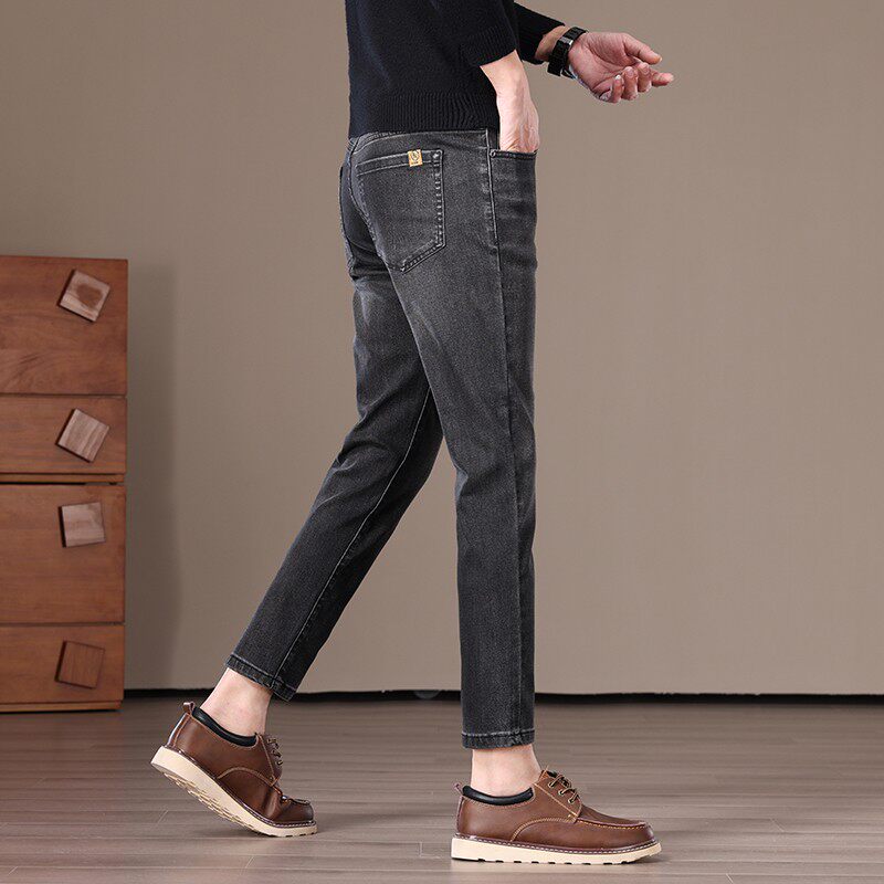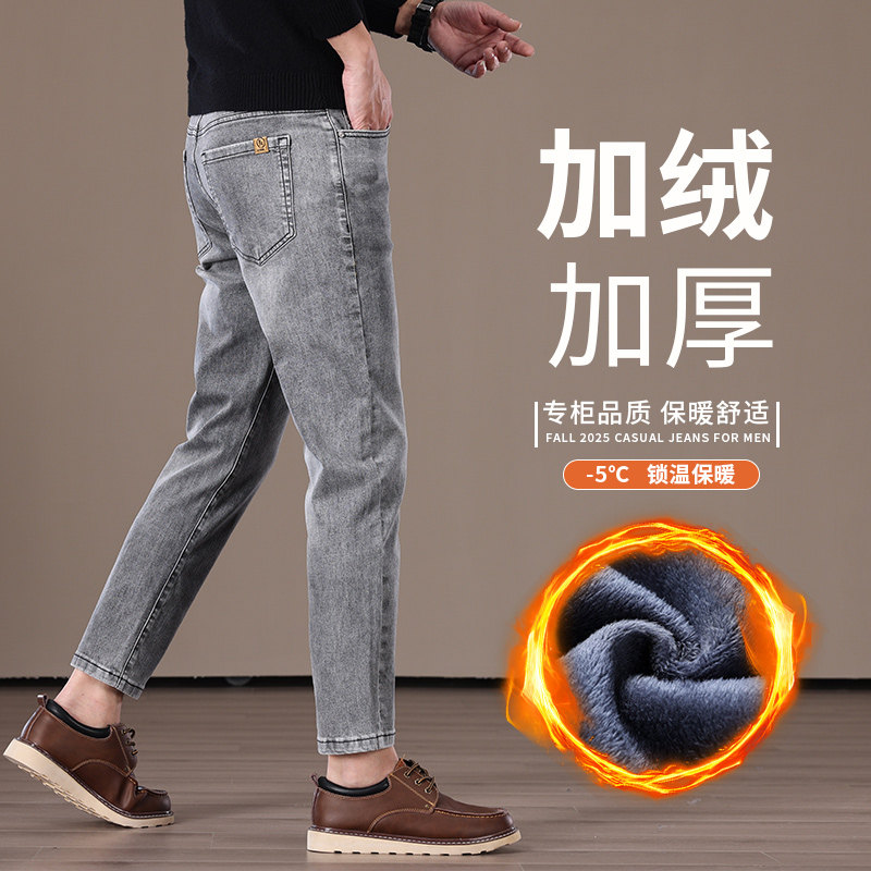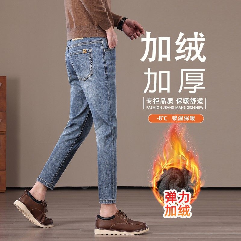 高端加绒加厚九分牛仔裤男2025新款秋冬修身小脚弹力休闲裤9分裤