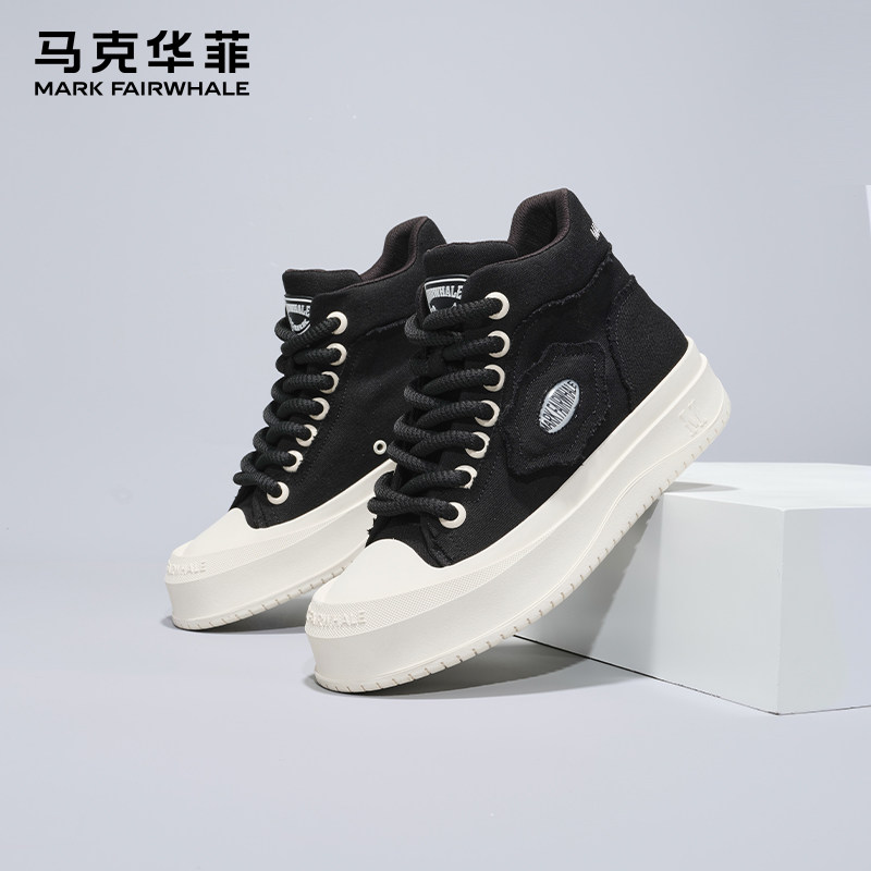 马克华菲板鞋男鞋冬季新款男士厚底增高软底中帮鞋运动休闲鞋子男
