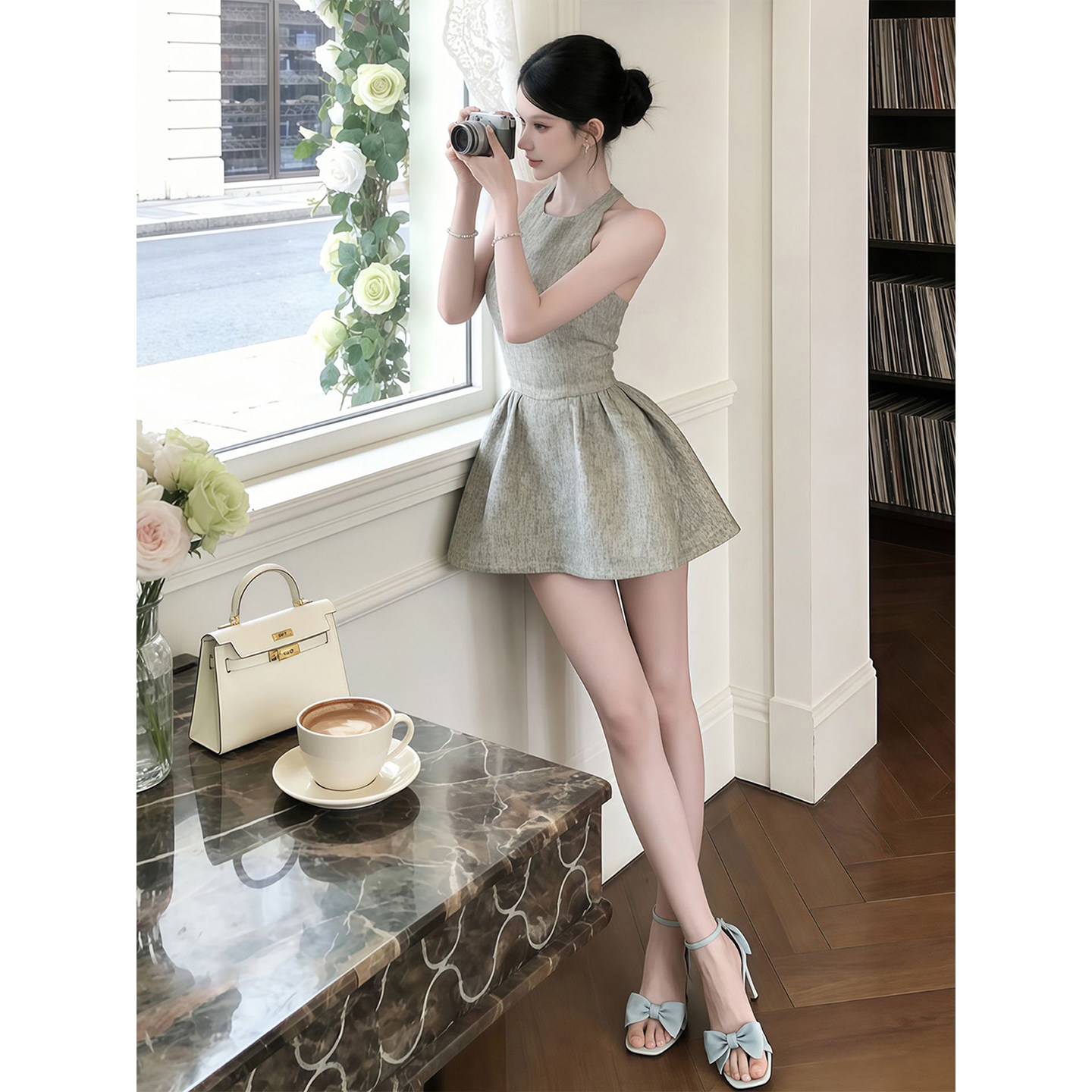 法式千金风高级感背心连衣裙子女夏季2026新款小个子收腰蓬蓬短裙