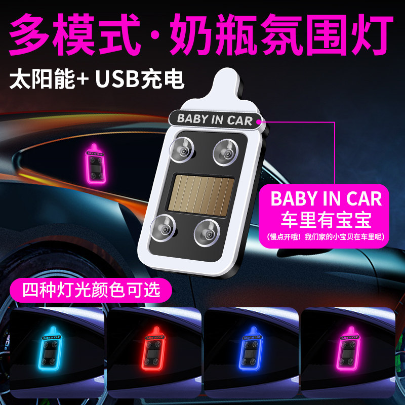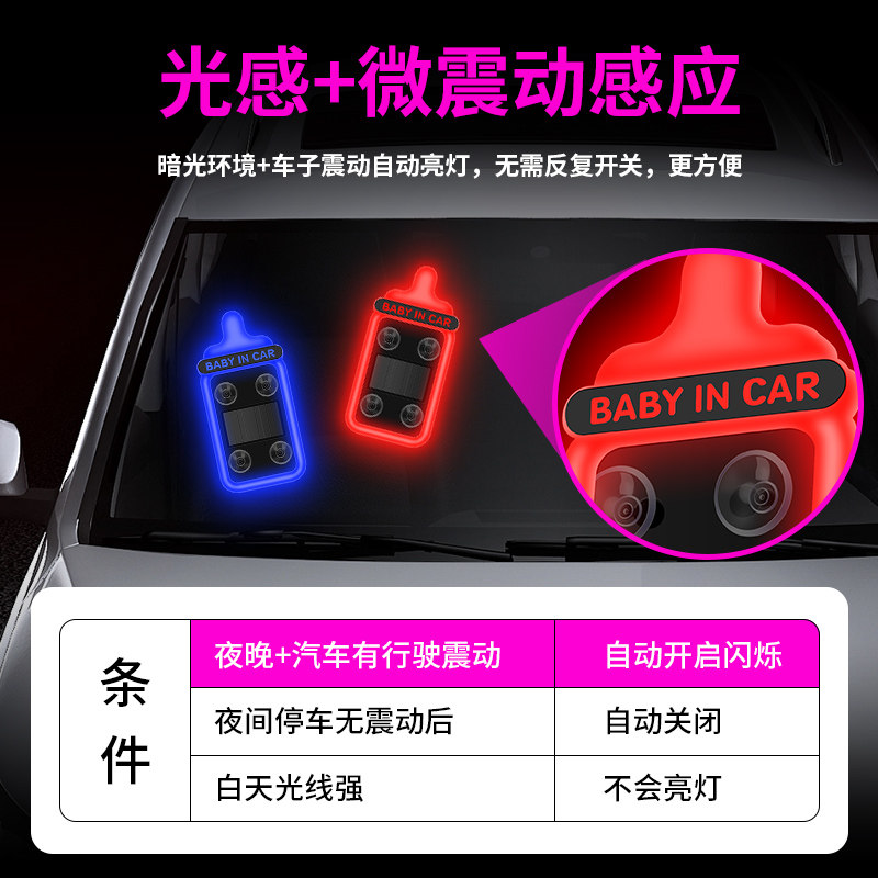 汽车奶瓶灯太阳能装饰灯LED警示灯三角窗后窗车内有宝宝氛围灯