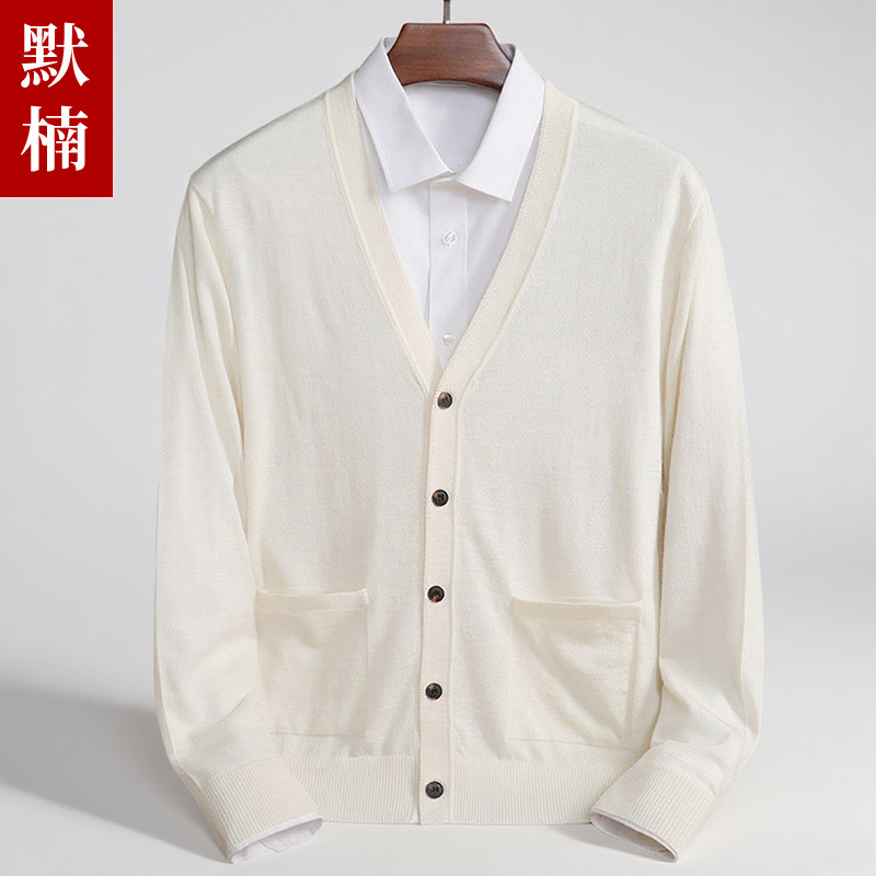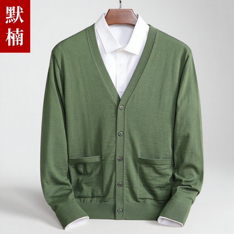 V领口袋针织衫男士2025秋冬新款爸爸装开衫毛衣中青年休闲打底衫