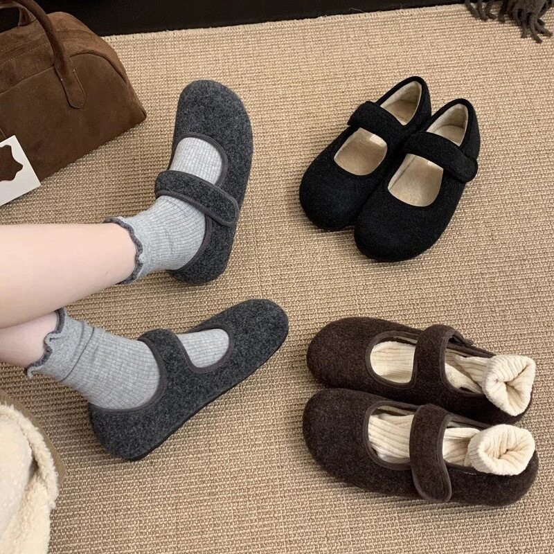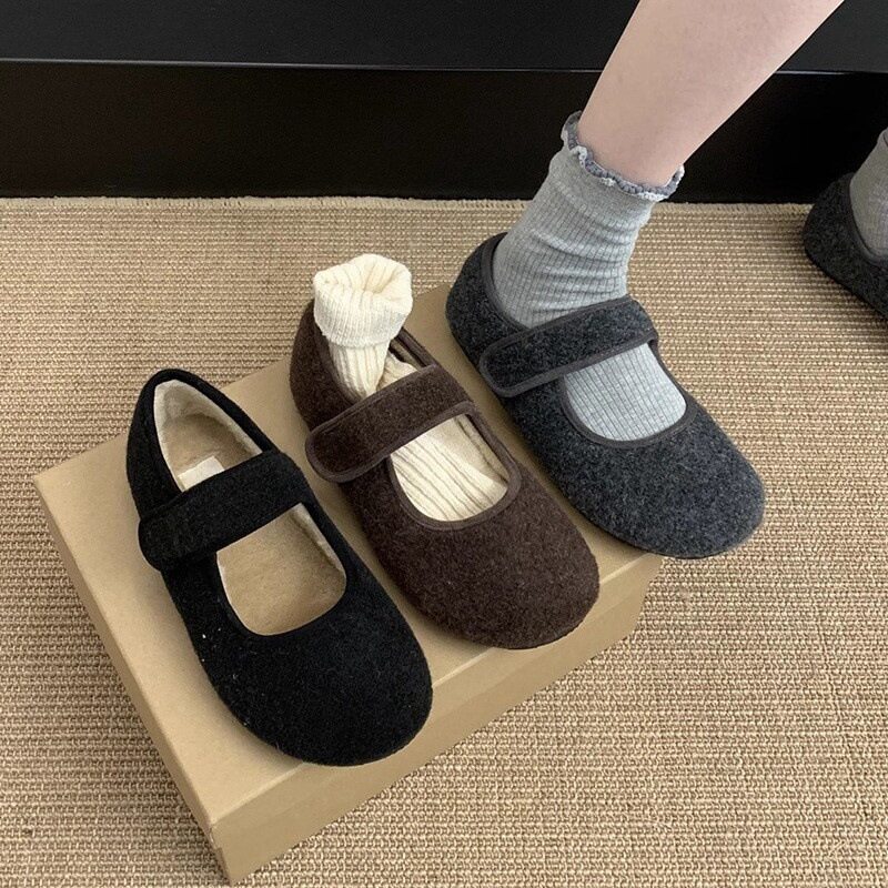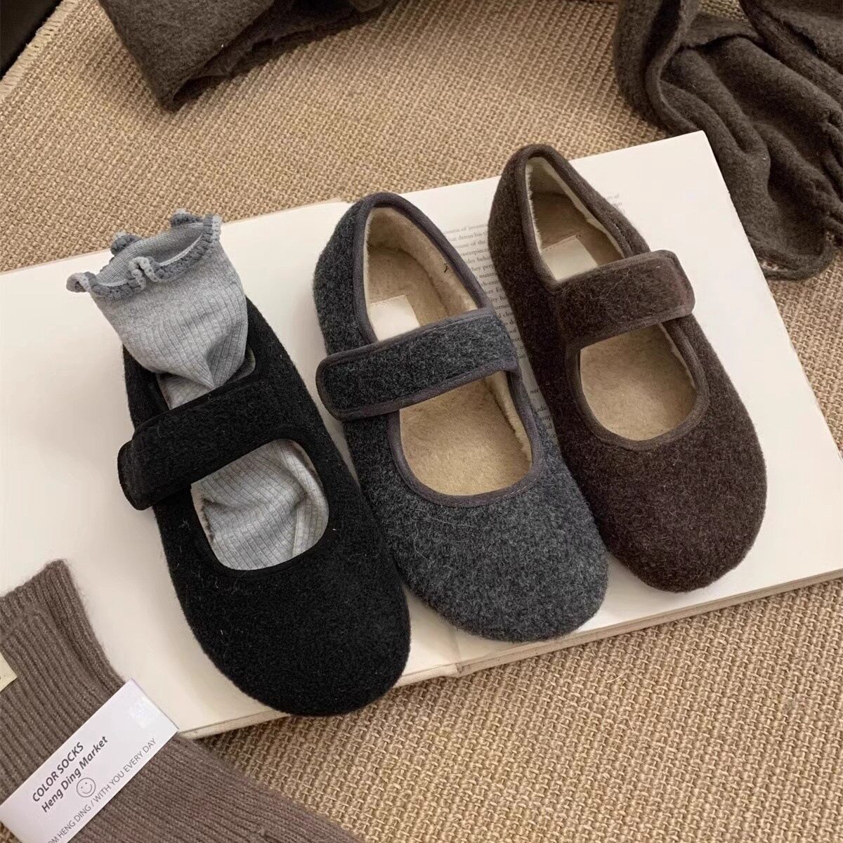 34码33小码女鞋2025超火毛毛鞋外穿新款软底豆豆鞋平底加绒单鞋