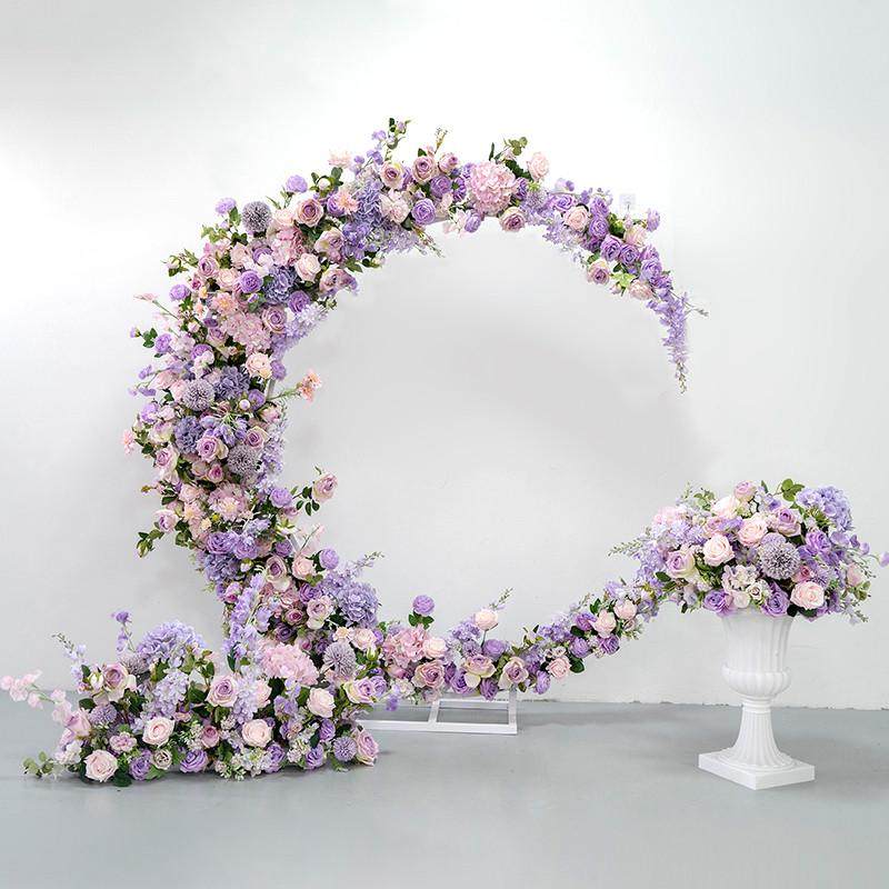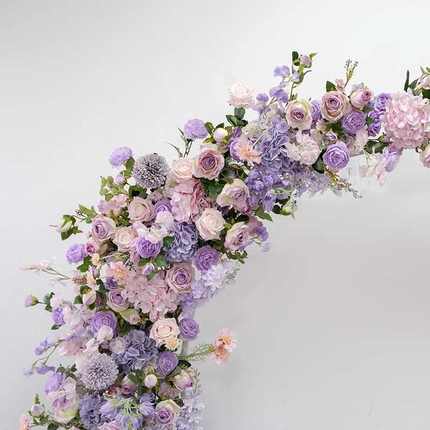 婚礼装饰背景月亮花艺套装 欧式紫色直播背景橱窗装饰仿真假花艺
