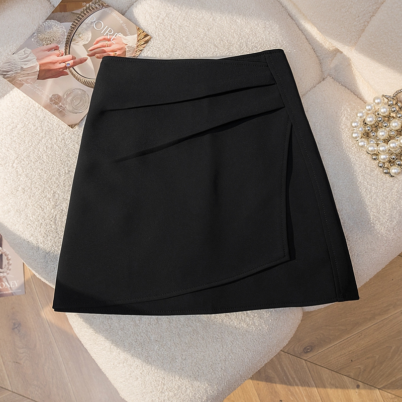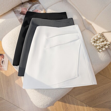 设计感白色西装半身裙女2025夏季侧开叉高腰a字裙显瘦褶皱短裙子