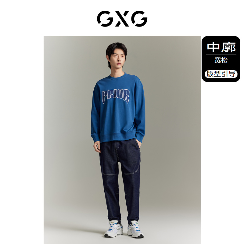 GXG男装 蓝色贴布绣字母卫衣23年秋季品GEX13113383