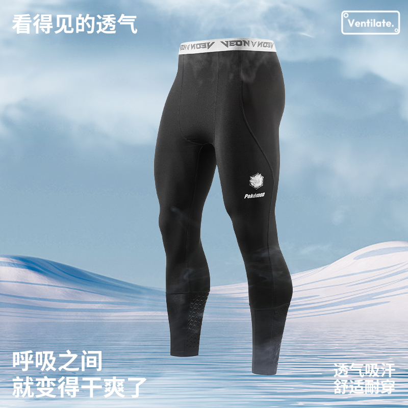 维动宝可梦联名九分篮球紧身裤耿鬼男运动健身透气高弹压缩打底裤