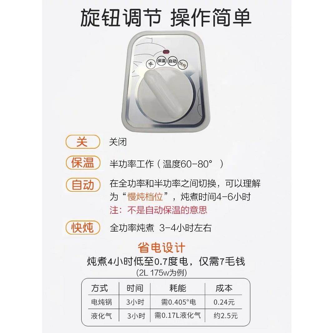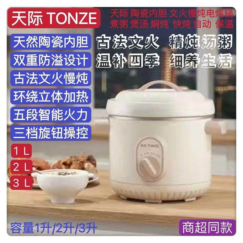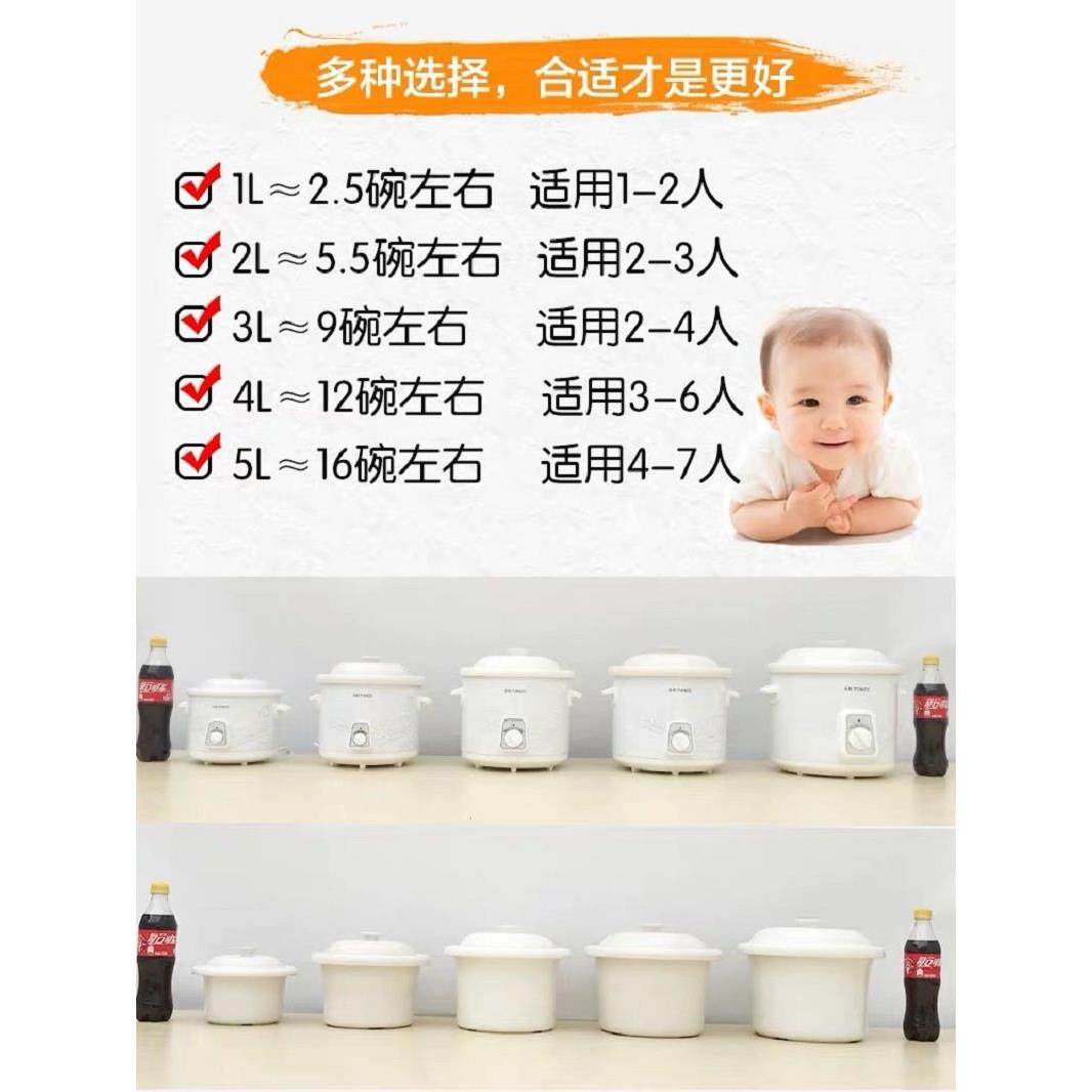 天际白陶瓷电炖锅1-6人 家用婴儿熬粥宝宝煲汤BB辅食神器1-2-3-4L