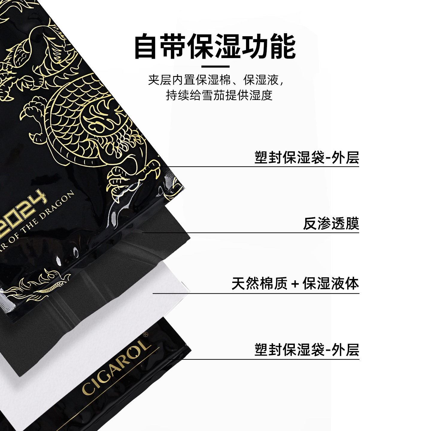 CIGAROL雪茄保湿袋便携旅行密封雪茄持久保湿大容量69%湿度保湿袋