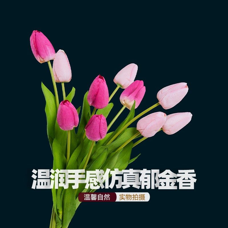 新 高档粉色郁金香假花仿真花摆设绢花艺客厅摆件塑料花装饰花卉